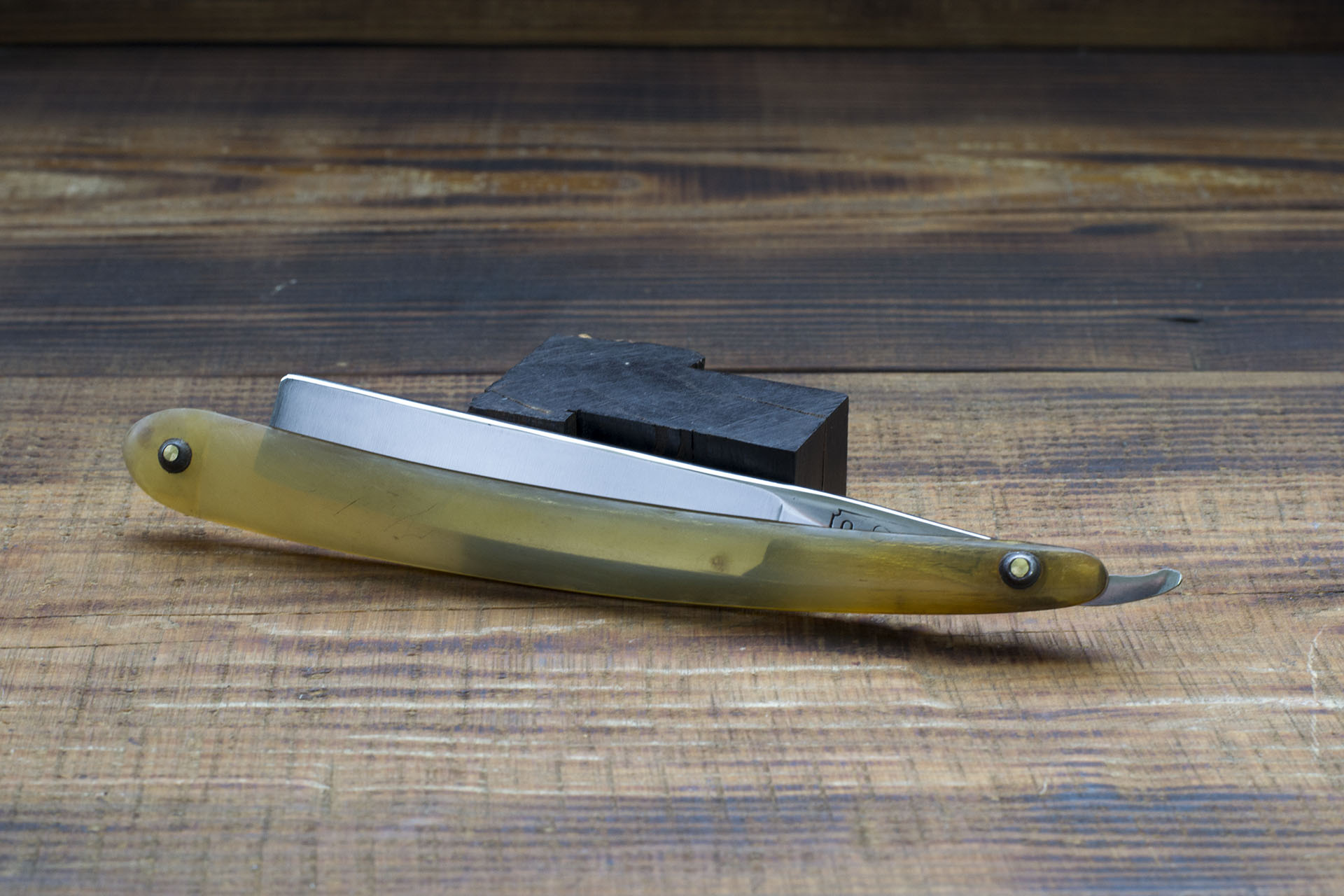 Французская опасная бритва от фирмы Thiers-Issard, изготовленная на одном из известнейших предприятий города Тьера, торговая марка 69 MEDAILLE ARGI. Предприятие было основано Пьером Тьером в середине 80-х годов 19 века, примечательно что Пьер был учеником мастера - изготовителя бритв а так же сам в последствии получил подобное звание в Гильдии. Нужно отметить что изготовление бритв и режущего инструмента было семейным бизнесом и вероятно Пьер, основав свою марку, в первую очередь преследовал цель межевания и отделения от семейного производства. Данный клин изготовлен в конце 19 века, имеет ширину полотна 20 мм и родную роговую рукоять. Клинышек бритвы изготовлен из целлулоида, что показывает постепенный переход предприятия от традиционных материалов к более современным, в остальном же - технология производства данного клина полностью аутентична и старомодна. Геометрия - традиционный для Франции клин с легкой улыбкой и небольшим парикхерским вырезом, форма рукояти так же полностью традиционна, геометрия полотна на высшем уровне - фаска режущей кромки тонкая и равномерная. Мягкая кованная углеродистая сталь, произведенная во Франции традиционным способом, идеальна для бритв с вогнутостью клин. Бритва заточена и готова к бритью, отличный коллекционный экземпляр - ранняя бритва знаменитой фабрики, продолжающей работать и по сей день. Продано 69 Show