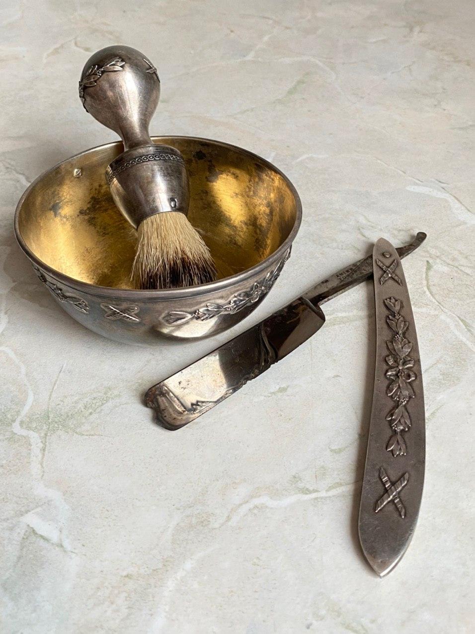 аукционные цены на бритвы на российском рынкеСтарый французский бритвенный набор (заявлено серебро 950 пробы)