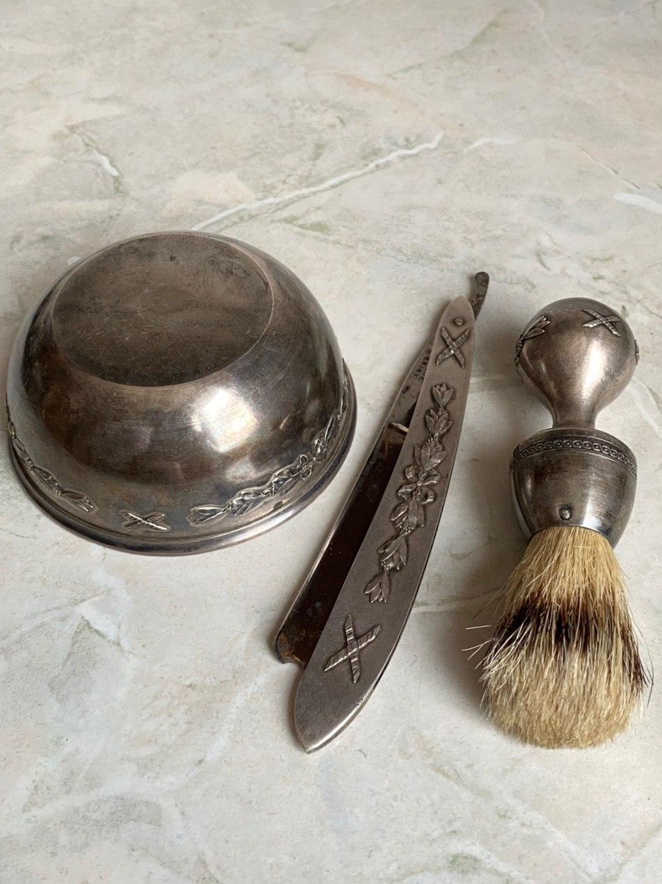 аукционные цены на бритвы на российском рынкеСтарый французский бритвенный набор (заявлено серебро 950 пробы)