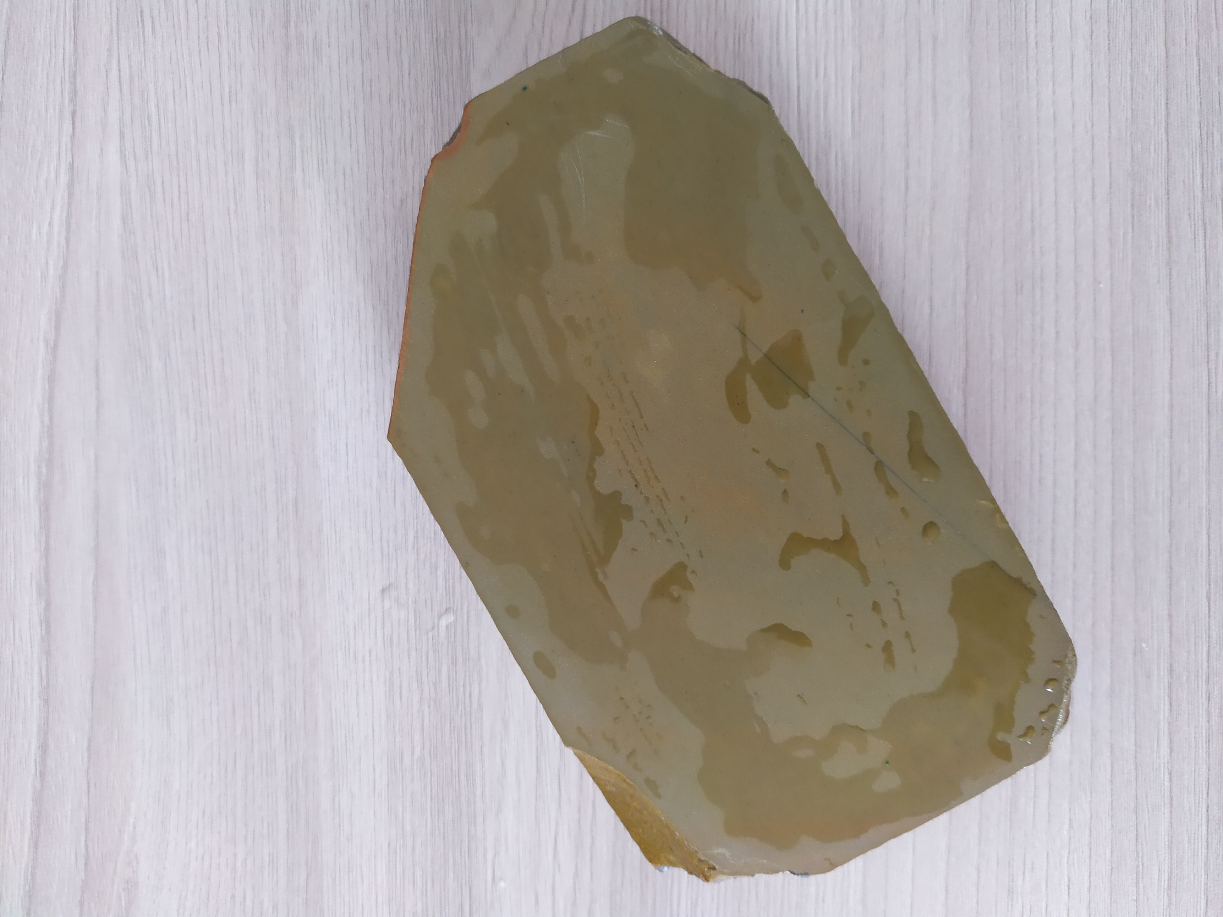 1.maruka Накаяма киита Кан.Твердость 5. Этот камень покупал на ебей, цену за него просили около 400$ или чуть больше точно уже не помню.Сразу не получилось его купить, думал продавец цену скинет, но камень перекупили, не знаю по какой причине, но в итоге сделка не состоялась и я 2 дня торговался с продавцом, чтобы снизить цену.За эти 2 дня я "нарыл" максимум информации о продавце ( все таки сумма не маленькая и хотелось знать кто мне продает товар). Продавец из Бельгии, камень описал грамотно и красиво, писал, что это лучший камень для бритв в его коллекции и что он все распродает ( кстати так и было). Я нашел его на SRP, там он известен, еще нашел его труды в сети по японским камням, очень интересная информация.К сожалению ссылку дать не могу не сохранил.Так же мне удалось найти японского продавца, у которого изначально был куплен этот камень.Можете мне не верить, но это правда, в итоге я списался с японцем , предоставил ему фото этого камня, японец, старик, продавец точильных камней, мне написал, что камень подходит для "полировки" ( так переводчик перевел) бритв и его цена составляет 380-450 $. Твердость камня -5. Так было в описании при покупке и так же считаю и я, твердость на мой взгляд именно 5 , кромка бритвы после заточки получается глянцевая, блестящая, отклик у камня приятный, не стеклянный.Линия не токсичная, заточке не мешает, рассматривал ее в лупу х10, ничего подозрительного не нашел.Еще хочу сказать, что зерно у камня тонкое."Запечатан" лаком со всех сотрон, кроме рабочей поверхности, мне думается это "уруши", но могу ошибаться. На торце хорошо видна печать "марука", камень толстый и тяжелый. Цену прошу 20000р. Размер 146 х 85 х 25-30 мм.