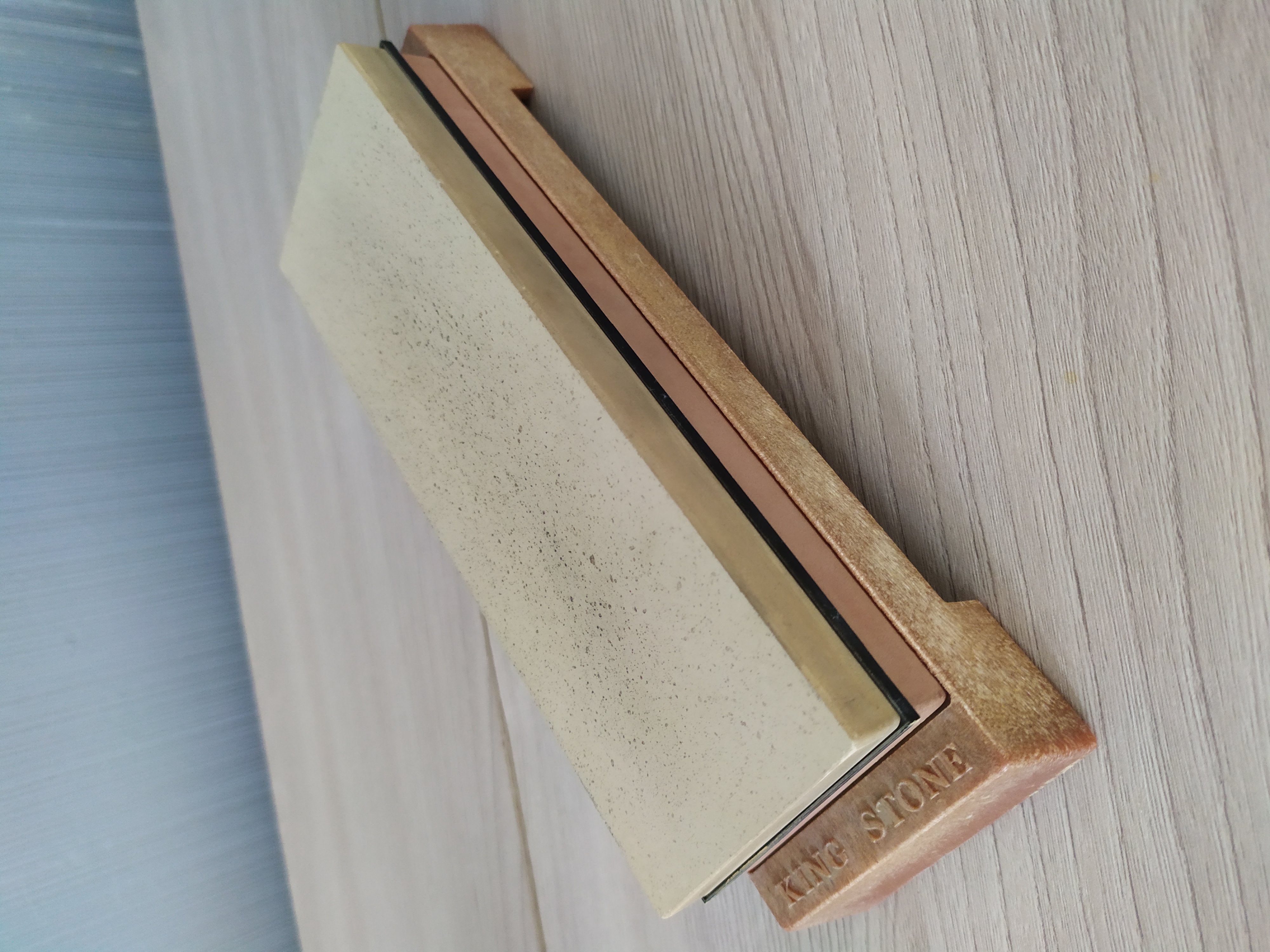 1.maruka Накаяма киита Кан.Твердость 5. Этот камень покупал на ебей, цену за него просили около 400$ или чуть больше точно уже не помню.Сразу не получилось его купить, думал продавец цену скинет, но камень перекупили, не знаю по какой причине, но в итоге сделка не состоялась и я 2 дня торговался с продавцом, чтобы снизить цену.За эти 2 дня я "нарыл" максимум информации о продавце ( все таки сумма не маленькая и хотелось знать кто мне продает товар). Продавец из Бельгии, камень описал грамотно и красиво, писал, что это лучший камень для бритв в его коллекции и что он все распродает ( кстати так и было). Я нашел его на SRP, там он известен, еще нашел его труды в сети по японским камням, очень интересная информация.К сожалению ссылку дать не могу не сохранил.Так же мне удалось найти японского продавца, у которого изначально был куплен этот камень.Можете мне не верить, но это правда, в итоге я списался с японцем , предоставил ему фото этого камня, японец, старик, продавец точильных камней, мне написал, что камень подходит для "полировки" ( так переводчик перевел) бритв и его цена составляет 380-450 $. Твердость камня -5. Так было в описании при покупке и так же считаю и я, твердость на мой взгляд именно 5 , кромка бритвы после заточки получается глянцевая, блестящая, отклик у камня приятный, не стеклянный.Линия не токсичная, заточке не мешает, рассматривал ее в лупу х10, ничего подозрительного не нашел.Еще хочу сказать, что зерно у камня тонкое."Запечатан" лаком со всех сотрон, кроме рабочей поверхности, мне думается это "уруши", но могу ошибаться. На торце хорошо видна печать "марука", камень толстый и тяжелый. Цену прошу 20000р. Размер 146 х 85 х 25-30 мм.
