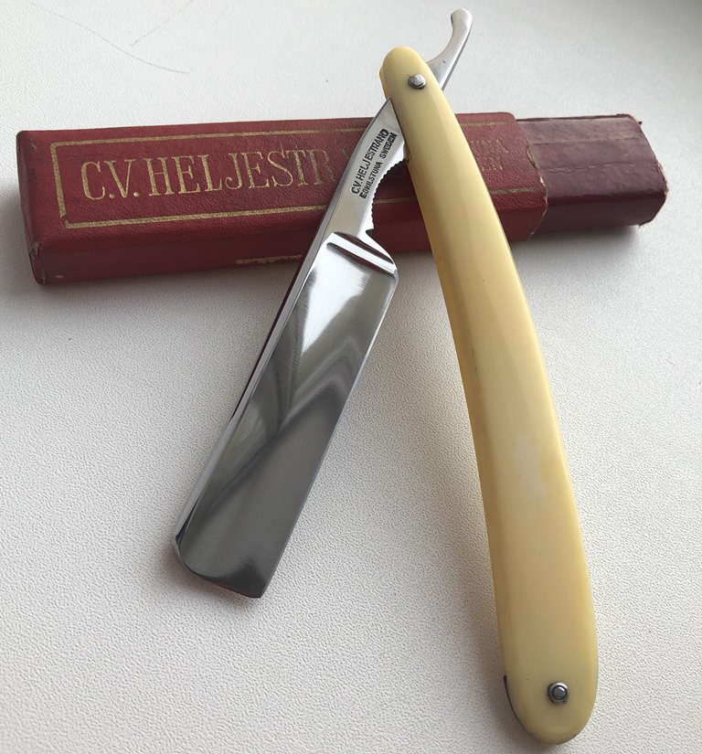 Как по мне, так очень красивая и практичная бритва. Тяжёлая,и удобная для пользования. Разобрал, немного освежил металл и снова собрал, поставив родные пины.Немного патины оставил на лицевой стороне клинка, чтобы не только оставить гравировку, но и сохранить оригинальный "налет старины"Идеальная геометрия полотна, сталь чистая, без дефектов.Бритва заточена и готова к бритью.Подойдет любому товарищу, интересующемуся бритьё клинковой бритвы:как новичку, так и опытному пользователю.