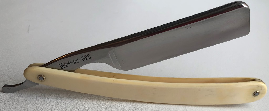 Бритва в очень хорошем состоянии , для своих лет.Мной не разбиралась, а если и разбиралась когда то, то очень давно, так как таких пинов сейчас не делают.Не уточена и имеет чуть заметные следы пользования.Сталь и кромка чистые, без дефектов.Родная роговая ручка также , в очень хорошем состоянии. Бритва миниатюрная, хотя достаточно увесистая, за счет своей формы лезвия. Подойдет не только для бритья, но и для коррекции усов и бороды.Можно порекомендовать опытным пользователям в качестве ещё одной в коллекцию, тем более вариант недорогой, но приятный во всех отношениях. Заточена и готова к бритью.