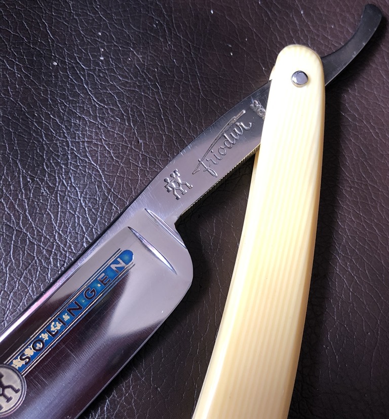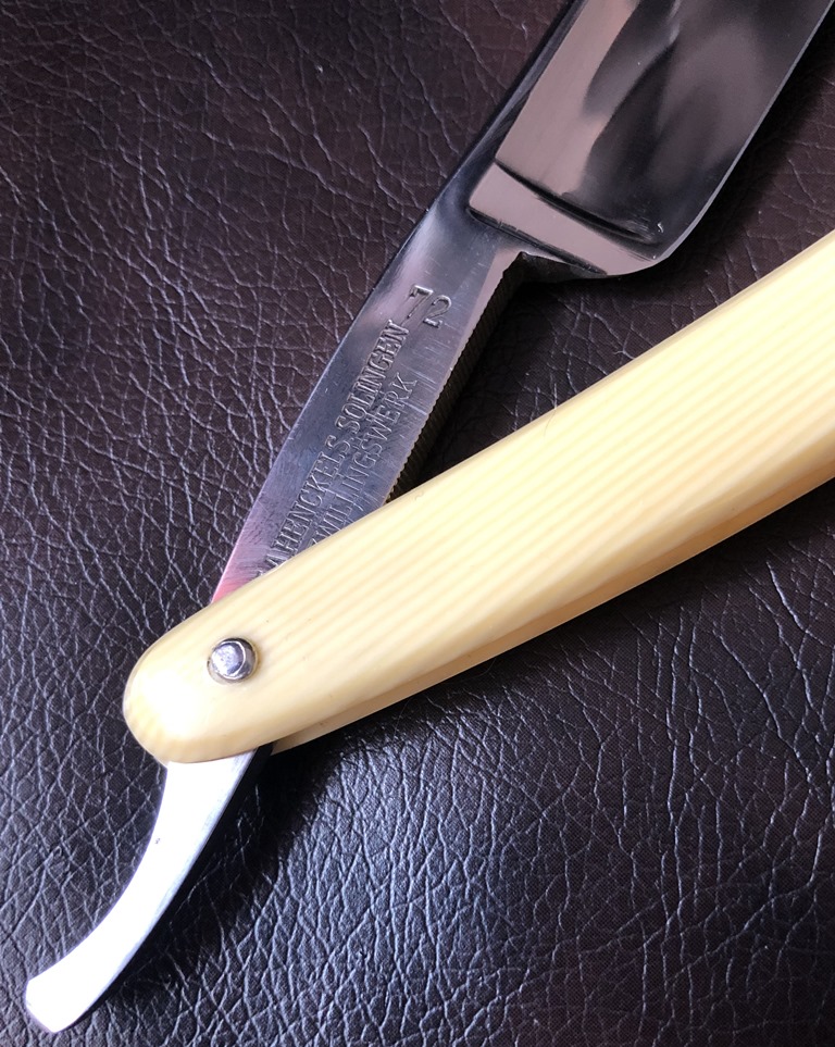 Все 4 бритвы разных моделей, в состоянии идеальное или близкое к идеальному... Непользованный J.A.HENCKELS.SOLINGEN ZWILLINGSWERK модель 72 Ширина полотна-20 мм Толщина обушка-5.8 мм Полная вогнутость. Сталь условно нержавеющая-FRIODUR INOX Бритва не разбиралась и не ремонтировалась, не имеет следов пользования.Заводская шлифовка и полировка. Полотно без царапин, следов окисления и других дефектов.(немного сошла синяя краска с букв на полотне, но это не принципиально).Идеальная геометрия клинка:кромочка равномерна по всей длине и еле заметна.Заточена и готова к бритью. Цена-9500 р с доставкой. ПРОДАН Spoiler Show