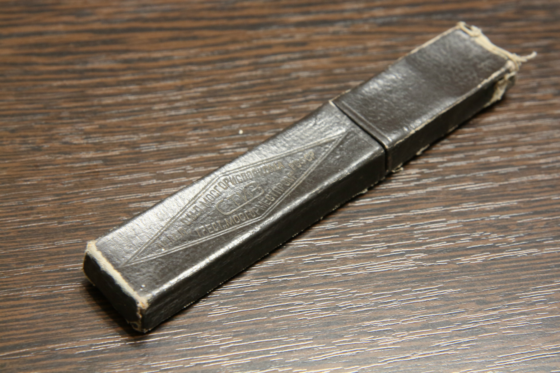 Опасная бритва завода Труд Вача Росинструмент, 1942 г. Немец рвется к Сталинграду... Я убит подо Ржевом, в безымянном болоте, в пятой роте... Ширина полотна 16.5 мм, футляр от СТИЗ. Ручка родная из зеленоватого пластика, есть трещина у верхнего пина, проклеил. Почистил вручную от следов времени и заточил. Подготовлена мной к бритью. Бритвы с клеймом "Росинструмент" очень ценятся. Цена - руб.
