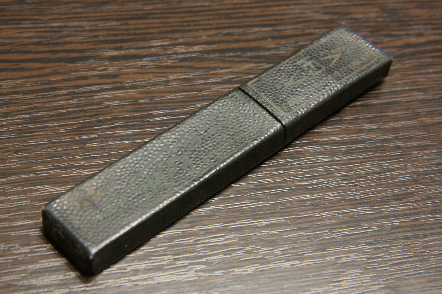 Опасная бритва Любительская, завод СТИЗ, 1956 год. Ширина полотна 17.5 мм, все родное в т. ч. футляр. Ко мне попала с заводской заточкой, но с некоторыми следами коррозии, чистил вручную, остались мелкие локальные следы времени (кромка чистая). Подготовлена мной к бритью, сталь довольно твердая. Любительская это редкая модель, выпускалась только в середине 50х, насечка на эрле сверху и снизу, "горбатая" линия обуха. Цена - руб.