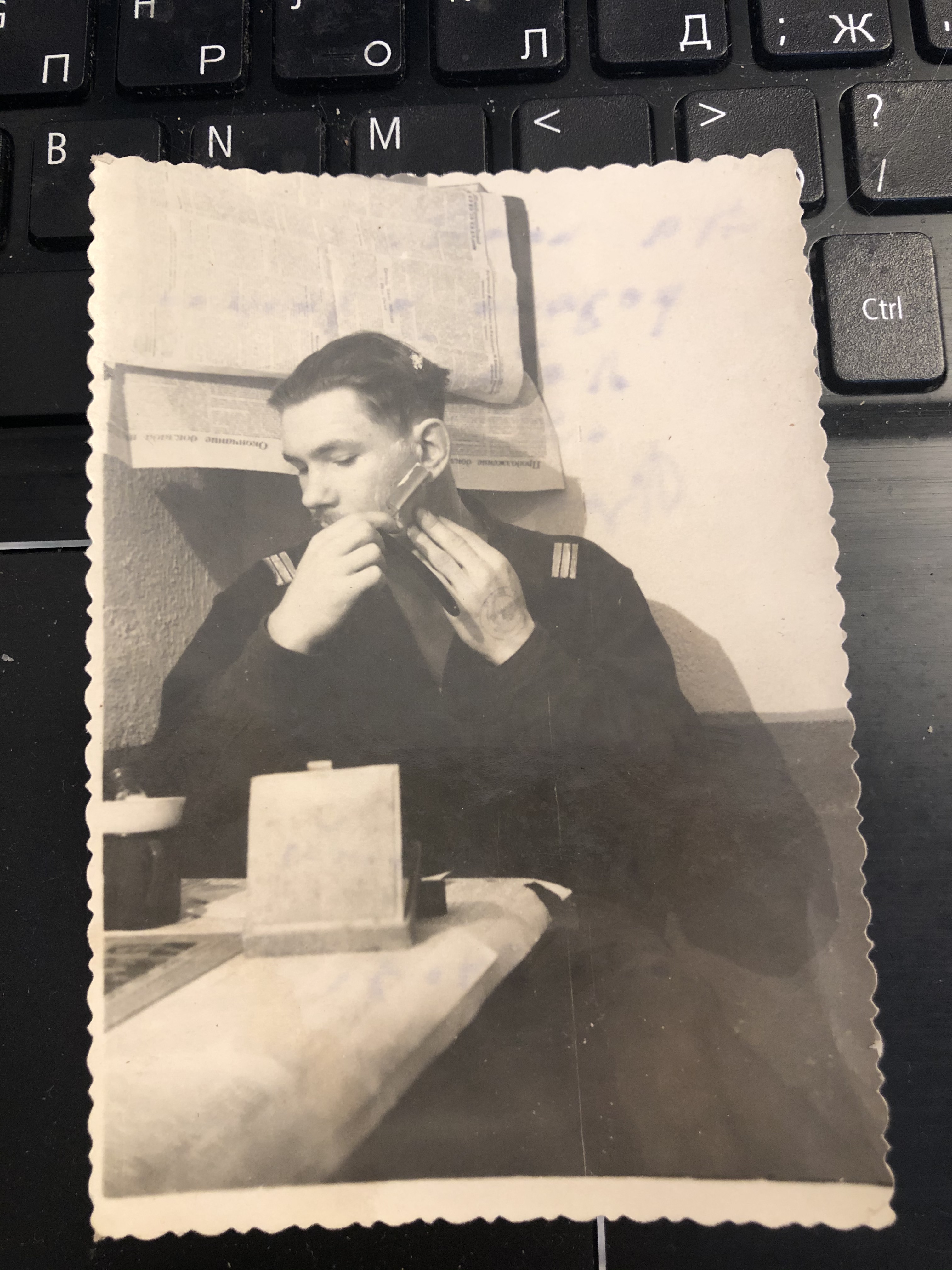 Теперь моряк будет бриться в моей квартире..  Я купил эту фотокарточку. Хай останется..