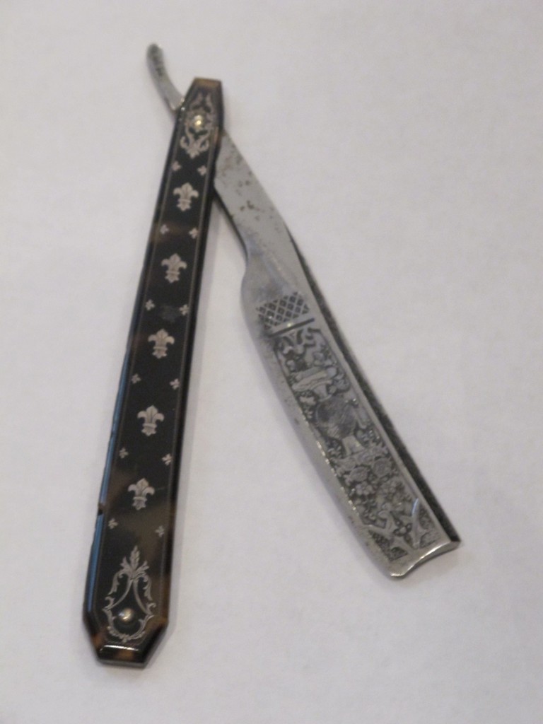 Так же погулял по сети и позаимствовал немного фото у французского форума. Есть пара музейных бритв из Лангра и еще один Guerre в черепахе. Производитель явно неординарный, видно по качеству исполнения. Кроме того спрос на бритвы Guerre стабильно высокий, не раз видел как торги на ебэй доходили до внушительных сумм. Мне, как и писал выше, моя пара досталась исключительно из за привередливости продавца, который не отправлял за пределы Франции и не принимал других способов оплаты кроме чека. История занимательная. Пришлось в итоге просить своего знакомого во Франции чтобы он выписал чек, отправил его в письме, а после сходил на почту для получения и переслал бритвы на мой адрес в Россию. За что ему огромное спасибо.