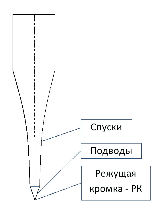 Подводы — это части лезвия, которые образуют режущую кромку. Именно на подводах проходит весь процесс заточки. Наличие подводов облегчают заточку и позволяют нам работать на кромке с необходимым давлением, уменьшая его на мелкозернистых камнях при доводочных операциях.