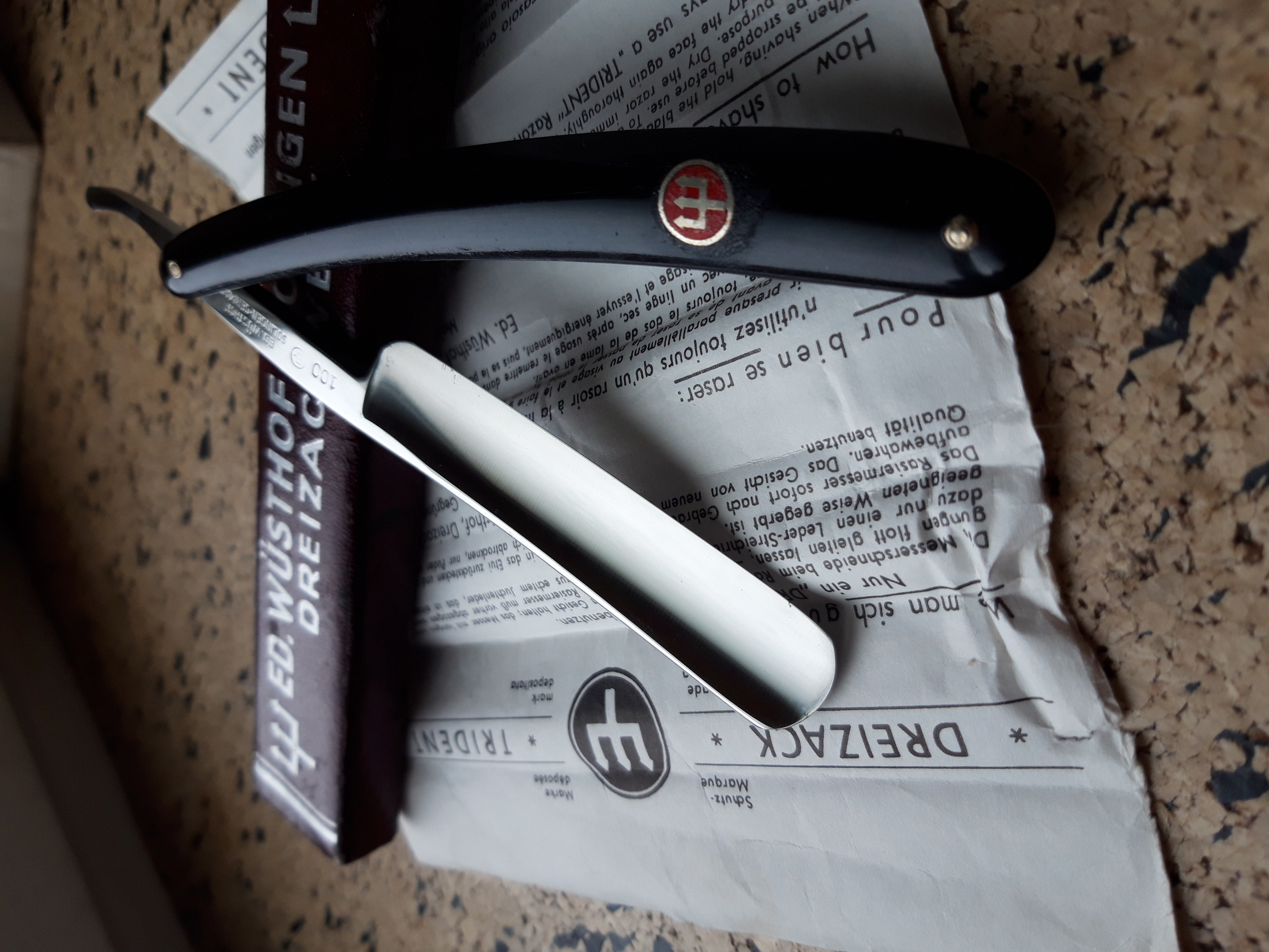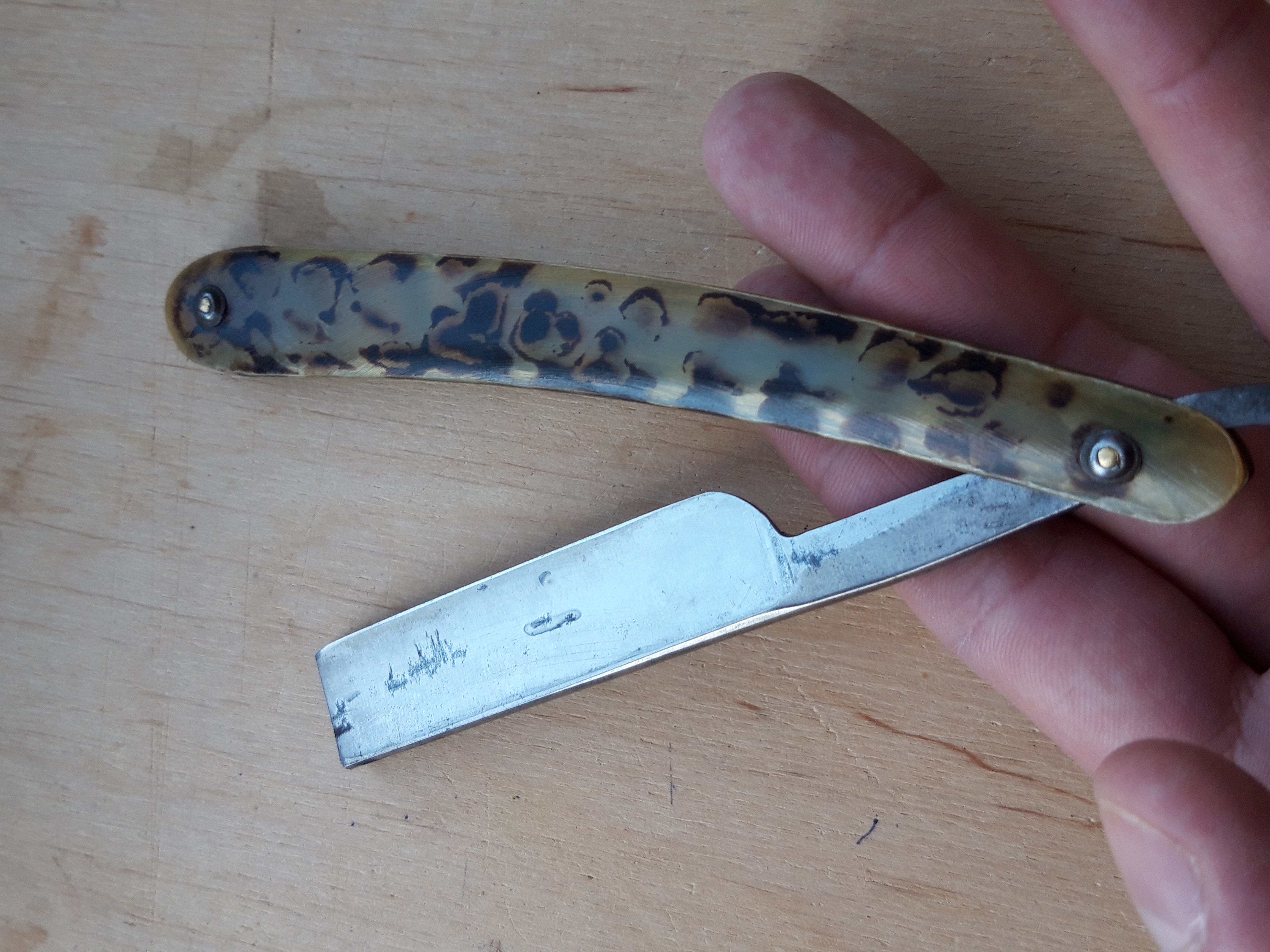 Клин. 20 мм. Обух более 6мм. Увесистый экз. Нос - танкерный. Ручка рог родная, мощная, в идеале. Клинышек олово. Бритва в использовании не была. Единственное, немного времени осталось возле обуха. Абсолютно ничего страшного. Бритва прошла через хорошие руки Дядюшки Фантомаса. Заточка тоже его. За что ему огромная благодарность! Продана.