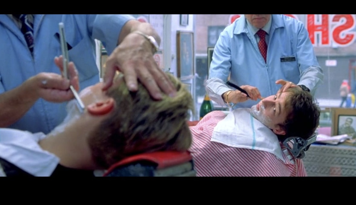 Сцена с бритвой, бритьё: