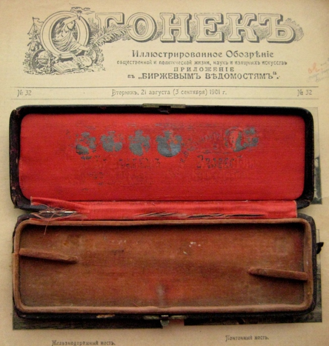 Надпись еле видна, но еще читабельна. Придв. фабрикантъ Бр.Брабец Киев- Москва Крещатикъ-Столешникъ.пер. Братья БрабецФутляр Эдуарда Брабец из другой темы перенесу сюда: