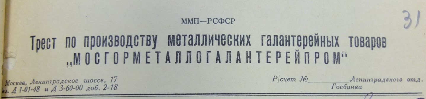 1) ММП. МГУМП Мосгорисполкома РСФСР трест Мосгорметаллогалантерейпром.