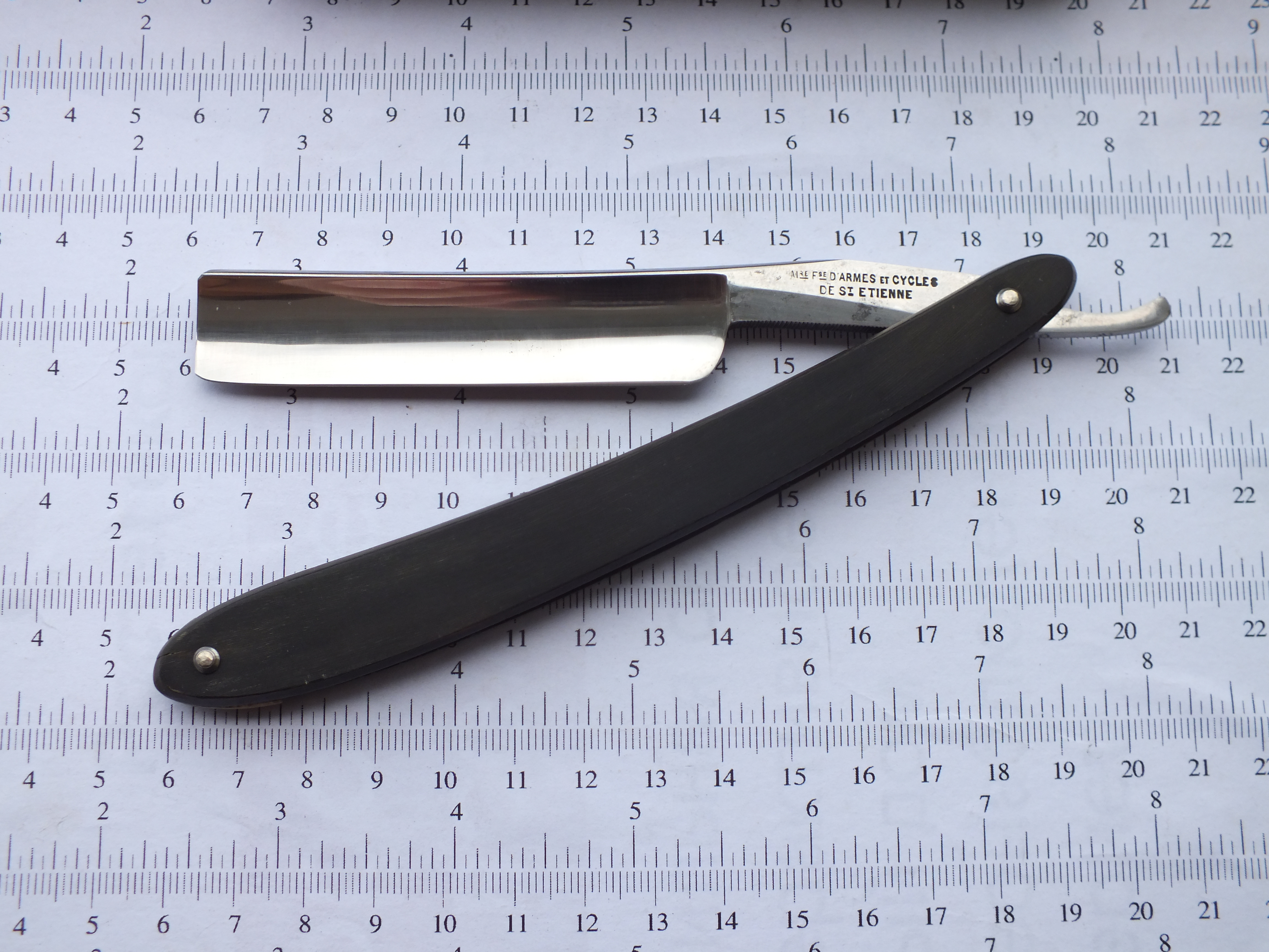 Состояние целки. Точил впервые. Кромка 0,15 мм. Есть следы времени. На обушке и полотне единичные неглубокие точки. 6/8 ложный фреймбэк. Углеродистая сталь, рог, кость. Бритва заточена и готова к бритью. Продано. Spoiler Show