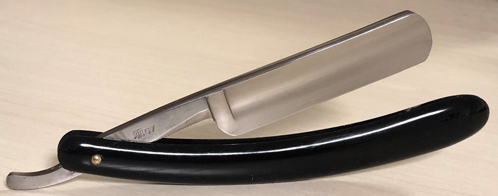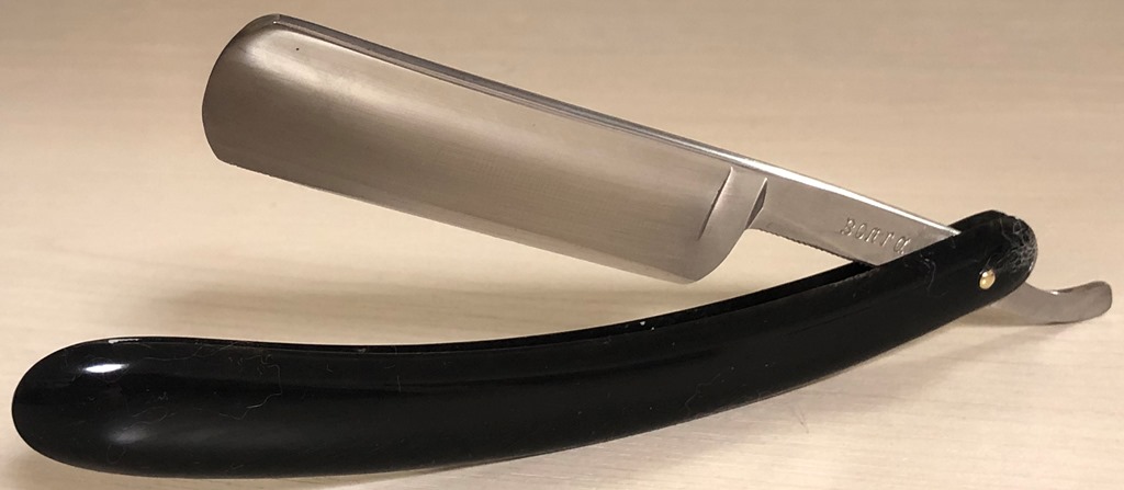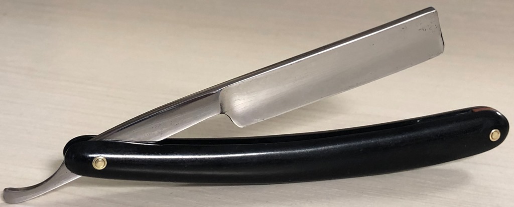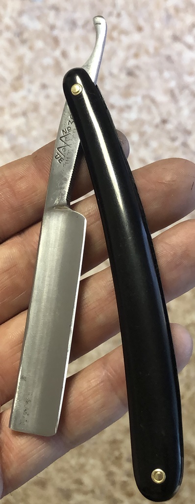 Ширина полотна-16.5 мм Толщина обушка-4.2 мм Полная вогнутость. Углеродистая сталь. Бритва, приблизительно 1936 года выпуска. В весьма хорошем состоянии. Разобрал, почистил клинок и снова собрал, поменяв родные медные пины на немецкие втулки, с добавлением внутренних шайб.Оригинальная буковая ручка находится в исключительном состоянии, без каких либо дефектов.Сталь полотна чистая, геометрия идеальная. Кромочка еле заметна и равномерна по всей длине. Родная, редкая коробочка также в комплекте:плотный , без дефектов картон.Бритва заточена и готова к бритью. Цена-3800 р с доставкой. ПРОДАН Внимание! Важная информация! Spoiler Show