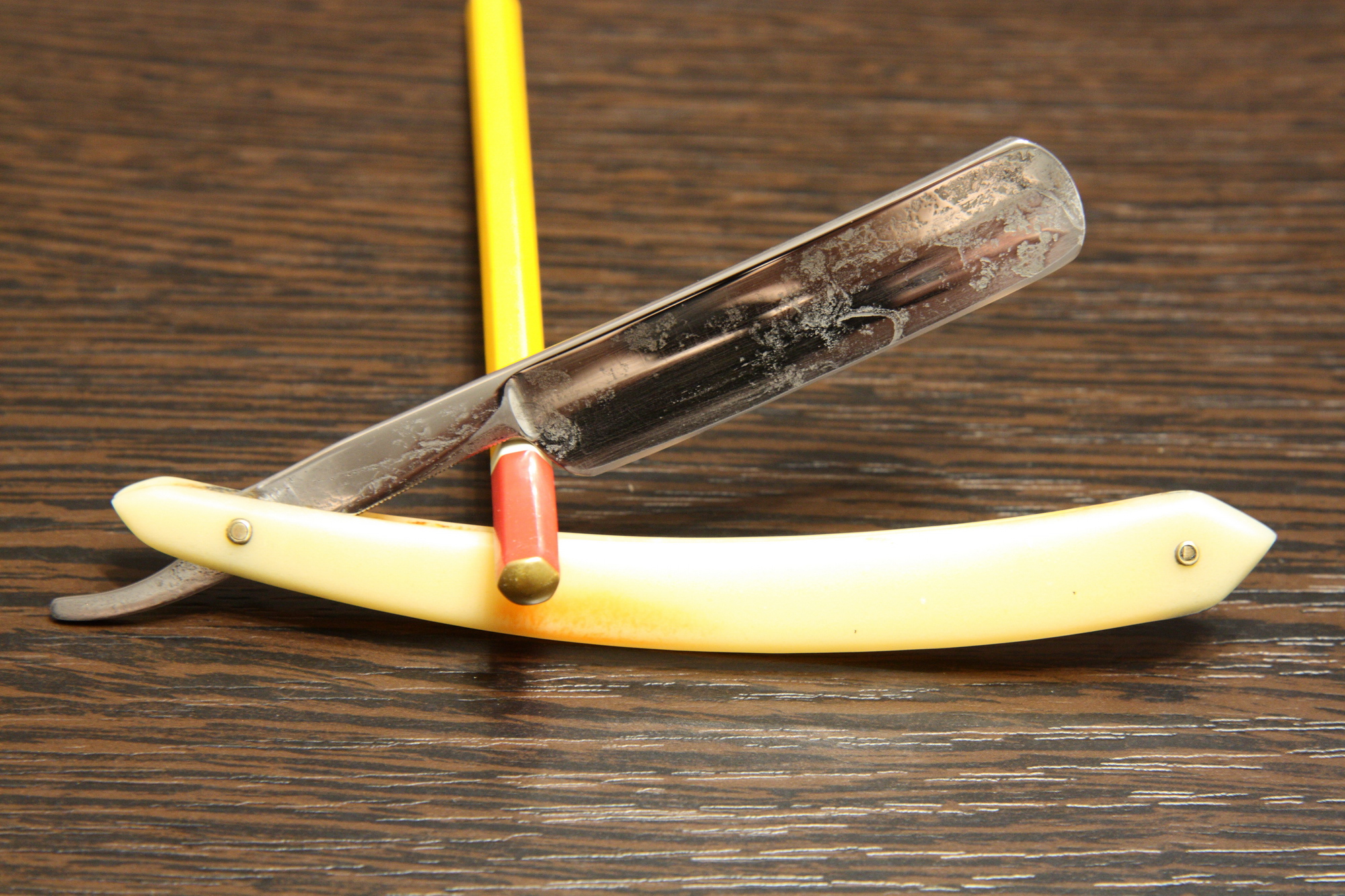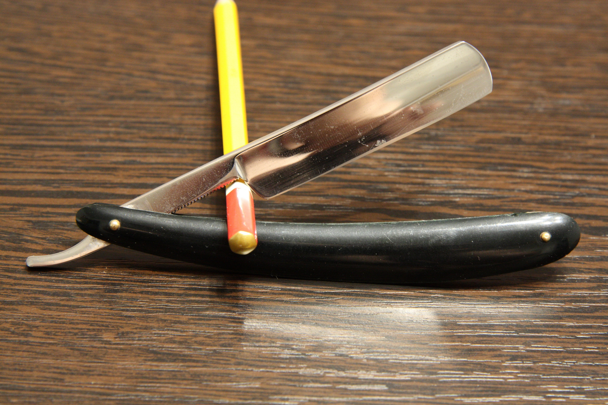 Опасная бритва ERN 17 Wald-Solingen, сделана в Германии в г. Золинген, ширина полотна 15 мм, все родное, футляр от другой немки, ручка металлическая (но баланс хороший, в отличии от советских медицинских бритв), профиль близок к клиновидному. Вручную почистил и заточил. Подготовлена мной к бритью. Бритва выпущена одной из самых известных фирм - ERN (клеймо корона с саблей), видимо для медицинских целей, при этом бреет просто отлично. Цена - руб. К бритве рекомендую приобрести ремень для правки опасных бритв моего изготовления из итальянской кожи (подробнее на странице 4, объявления 56-58). Spoiler Show