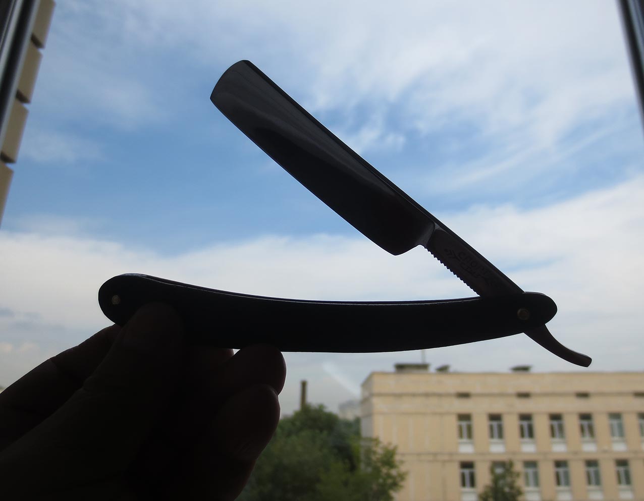 Углеродистая сталь, ширина полотна - 6/8 (20мм) дюйма, родная оправа - полированный рог, заклёпки - латунь. Следы гринда оставил, дабы сохранить травление орла на клинке. Инструмент заточен на японских водных камнях и полностью готов к работе после покупки. После всех работ и тестов продезинфицирован и использоваться до покупки не будет. Довольно недорогой, но достойный вариант для тех, кто решил приобщиться к правильному способу борьбы с щетиной. Также есть и новые ремни для правки и при покупке бритвы и ремня бонус - доставка почтой России за мой счёт. Начинающим подскажу и покажу, как пользоваться и ухаживать за инструментом. Цена - 4500 рублей.