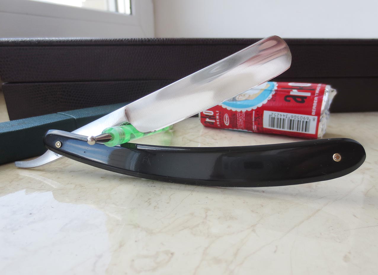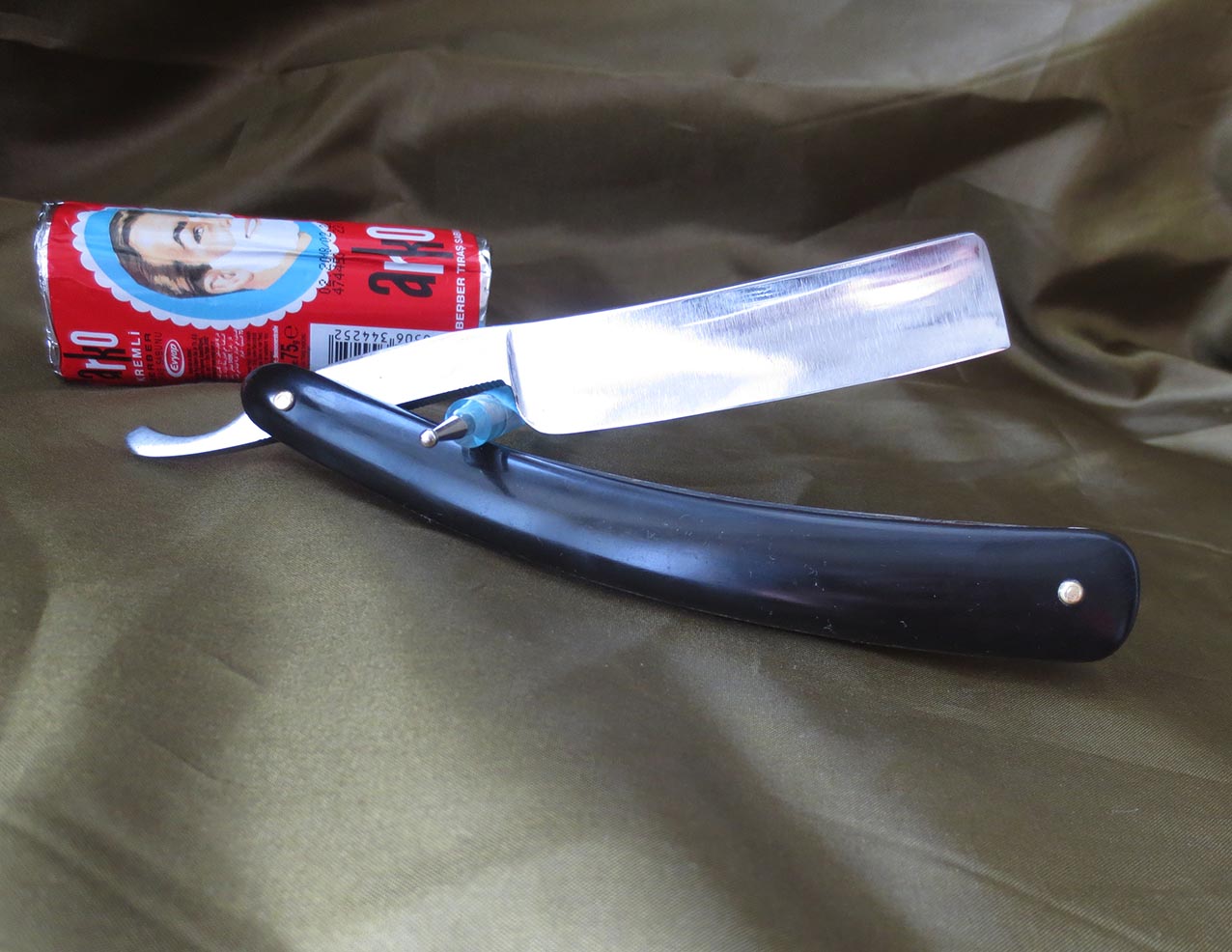 Углеродистая сталь, ширина полотна - 6/8 (20мм) дюйма, родная оправа - полированный рог, заклёпки - латунь. Следы гринда оставил, дабы сохранить травление орла на клинке. Инструмент заточен на японских водных камнях и полностью готов к работе после покупки. После всех работ и тестов продезинфицирован и использоваться до покупки не будет. Довольно недорогой, но достойный вариант для тех, кто решил приобщиться к правильному способу борьбы с щетиной. Также есть и новые ремни для правки и при покупке бритвы и ремня бонус - доставка почтой России за мой счёт. Начинающим подскажу и покажу, как пользоваться и ухаживать за инструментом. Цена - 4500 рублей.