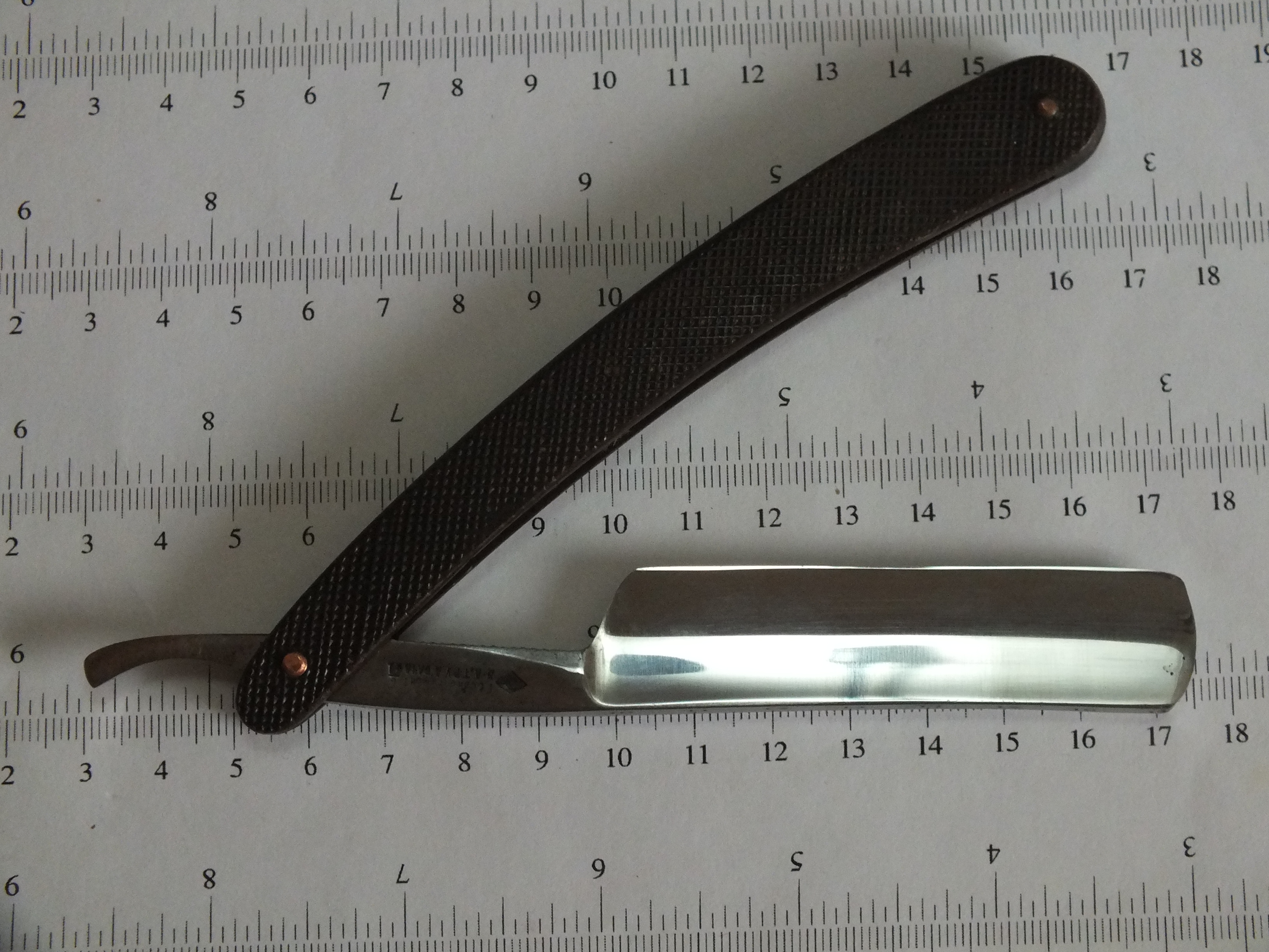 Ширина полотна 16,5 мм. Обушок 4,0 мм. 1/2 холлоу. Углеродистая сталь, бук. Бритва заточена и готова к бритью. Родная коробка в наличии. Продана Spoiler Show