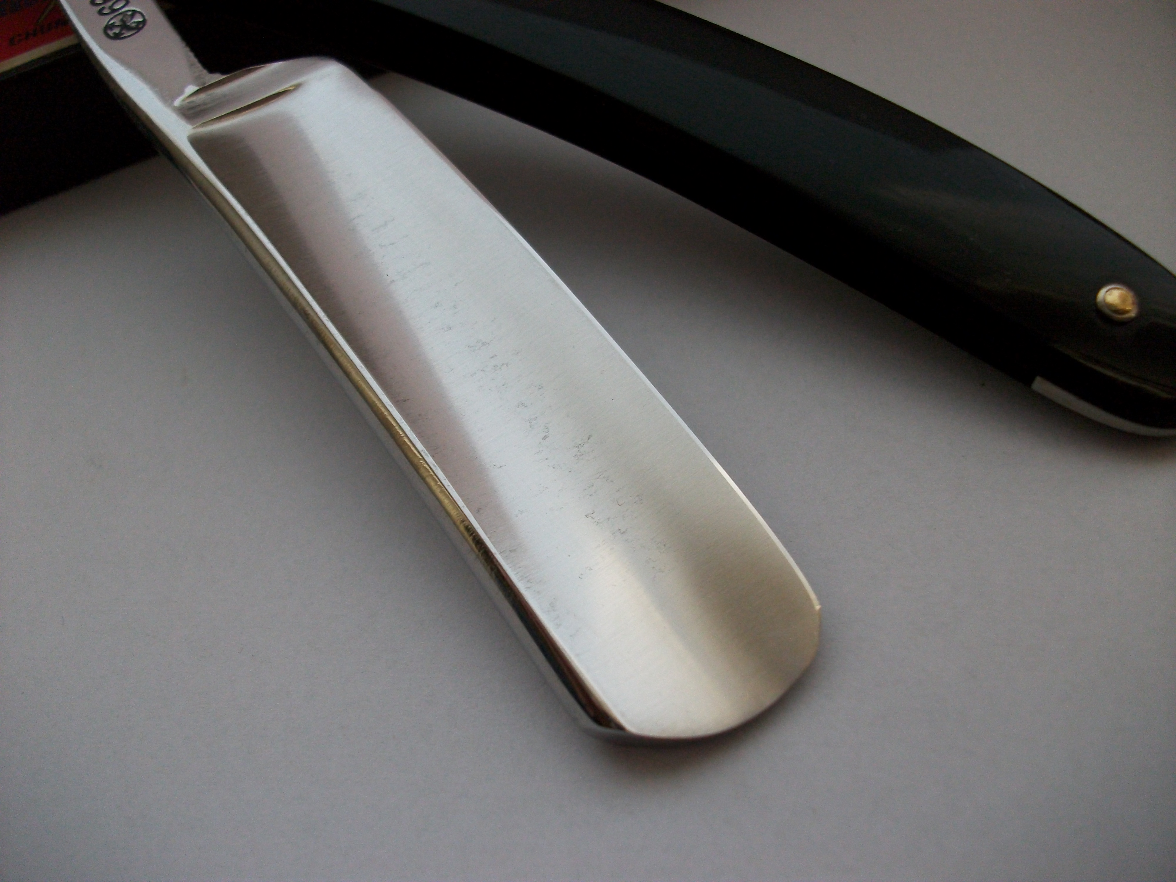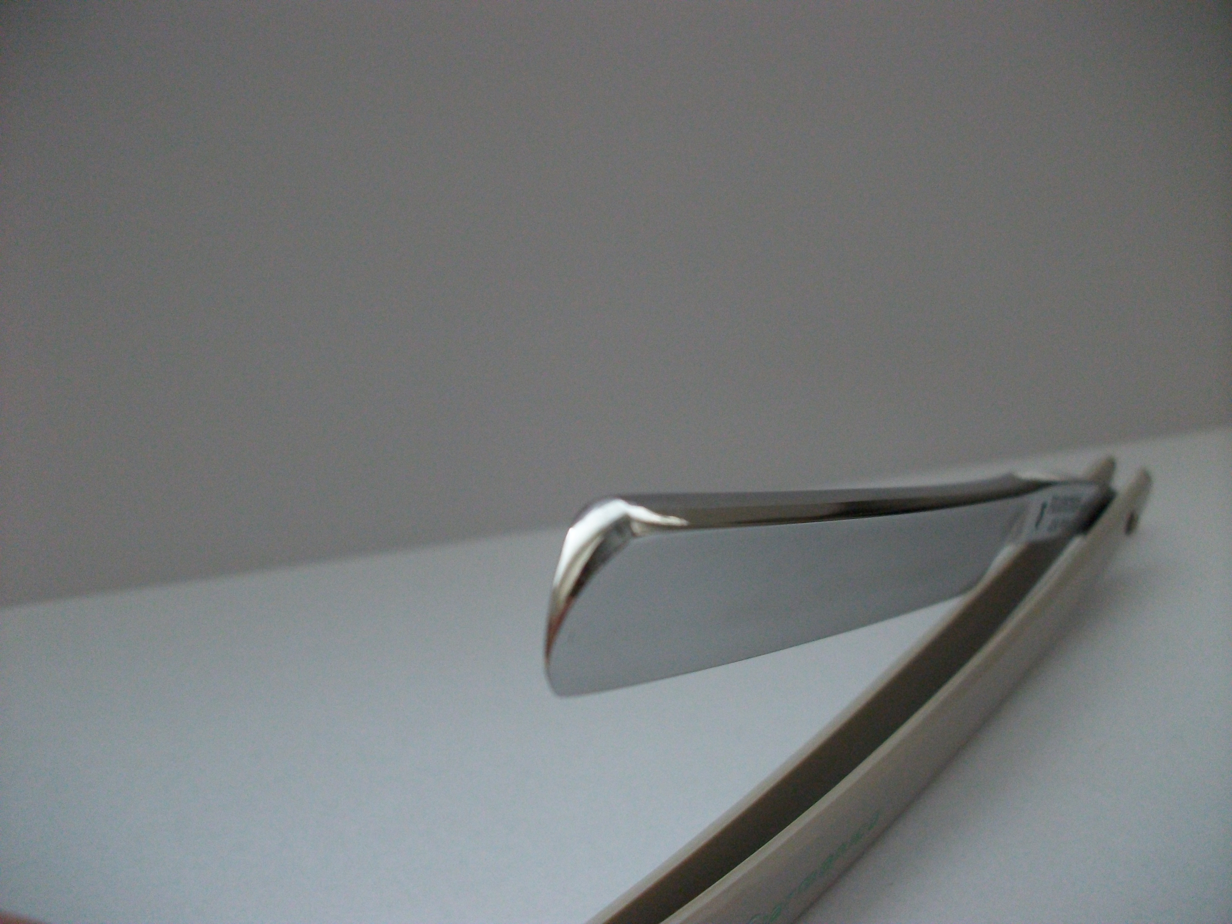 Ширина полотна 20мм, длина режущей кромки 70мм, нержавеющая сталь Frozen-steel (так полагаю закалка с применением отрицательных температур. Ручка классическая Пумовская, 3 пина, непонятные номера у осевого пина. Заточена и готова к бритью. Продано. Spoiler Show