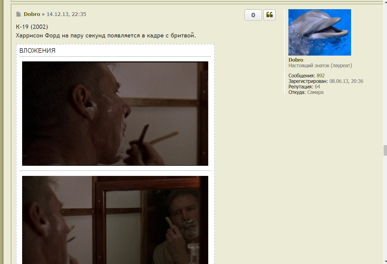 На 1-вой странице На 28-ой странице Я убежден, что это произошло по недосмотру и без никакого злого умысла. Я считаю, что перед тем как показать фильм с участием опасной бритвы, надо проверить не показан ли уже этот фильм кем то другим. Даже если написали только название фильма и нет фото, все равно уже нельзя показывать. За исключением тех случаев, когда автор написал, что просить у других найти этого фильма. Иначе произойдет накладка и получается что идем по второму кругу в этой теме. Если я такое допущу, прошу указать мне на это и я извинюсь. С 2013 г. с кайфом бреюсь опасной бритвой пять раз в неделю, в три прохода.