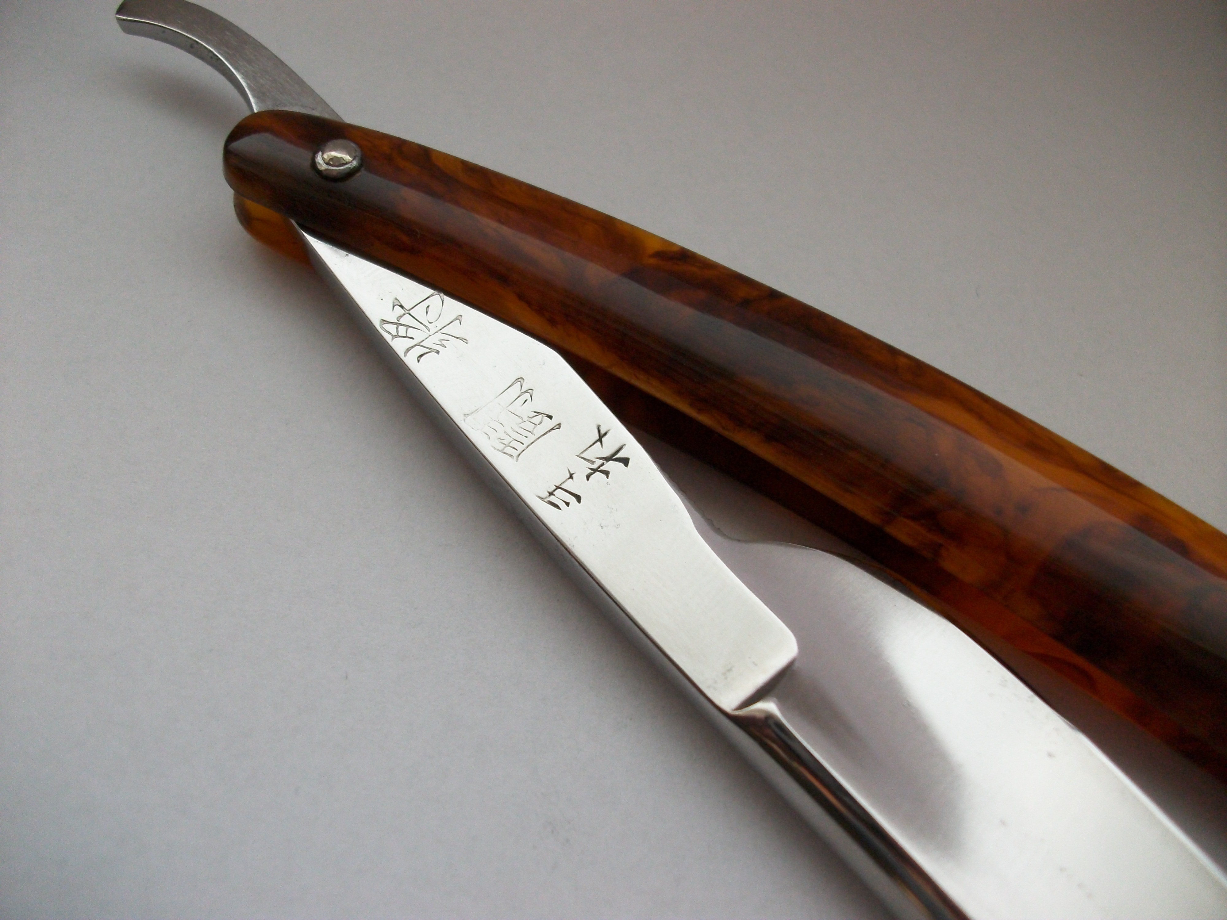 Данный японец достаточно популярен у коллекционеров. Углеродистая сталь, ширина полотна 21мм, длина режущей кромки 58мм, вогнутость 1/2, ручка пластик. На полотне остались следы времени, но родной сатин присутствует как и травление. Заточена и готова к бритью. Продано Spoiler Show