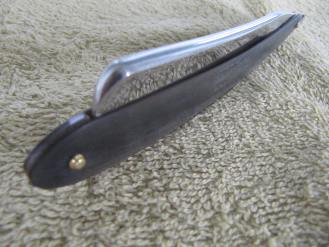Продаётся от Роман Иванович БMarx&Co. (Германия). Вполне известная марка германских бритводелов, завоевавшая определённый авторитет у бритвоманов. На клинке увы имеются незначительные следы времени, режущая кромка бритвы без изъянов, так что на бритье данный недостаток не скажется. Бритва не разбиралась, заточена на натуральных японских камнях, обеспечит мягкое и комфортное бритьё будущему владельцу. ПРОДАНА