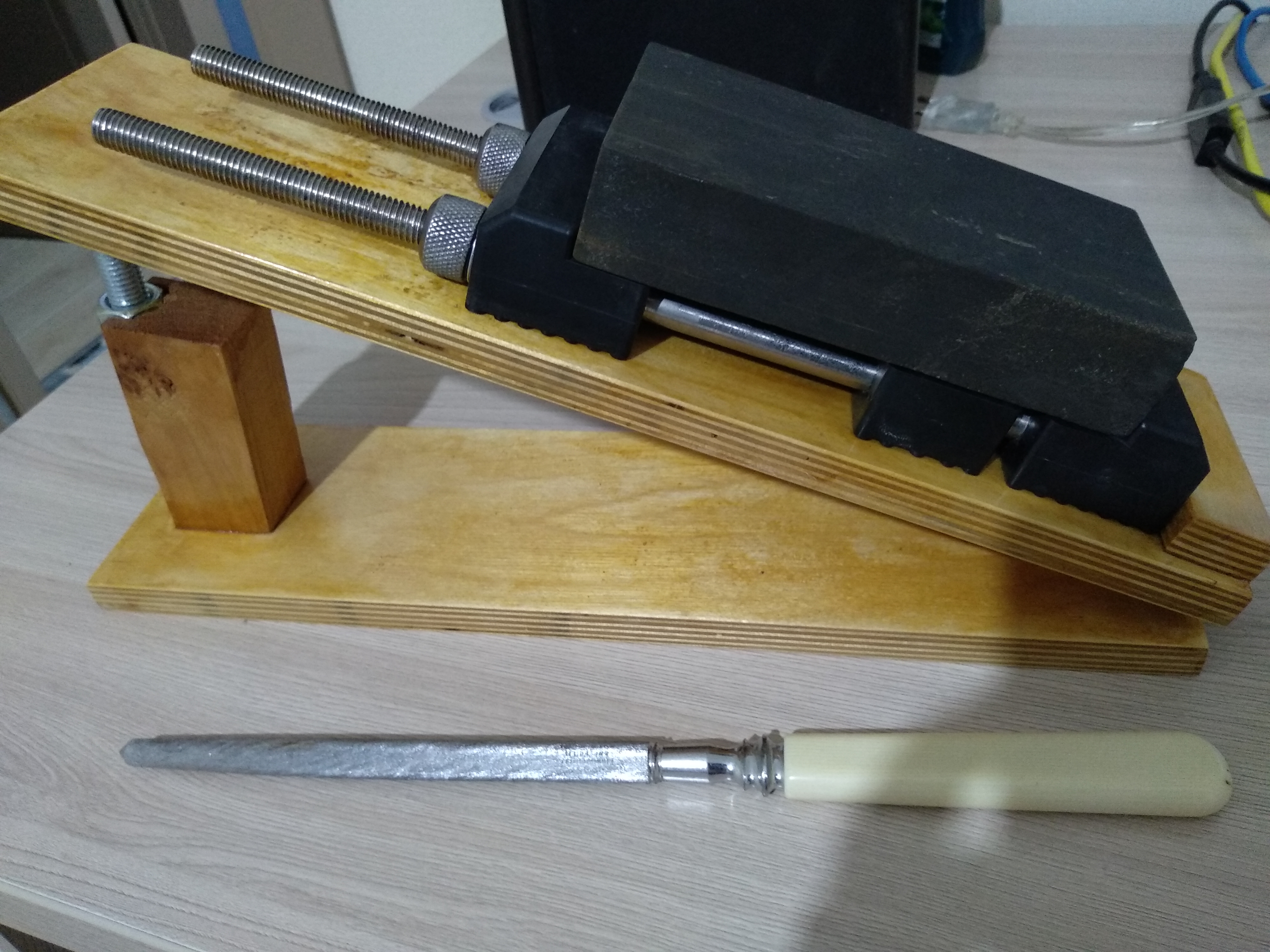 Кухонные ножи-способы заточки.На Ганзе года 2 назад человек выкладывал список и чек из Лероа, по моему на 250 рублей. Он взял все эти детали там и смостырил подобный костыль. Фото, видео и инструкции там были. Так что ничего удивительного не вижу