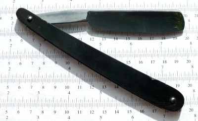 6/8 Near wedge. Углеродистая сталь, рог, кость. Бритва заточена и готова к бритью. Продана Spoiler Show