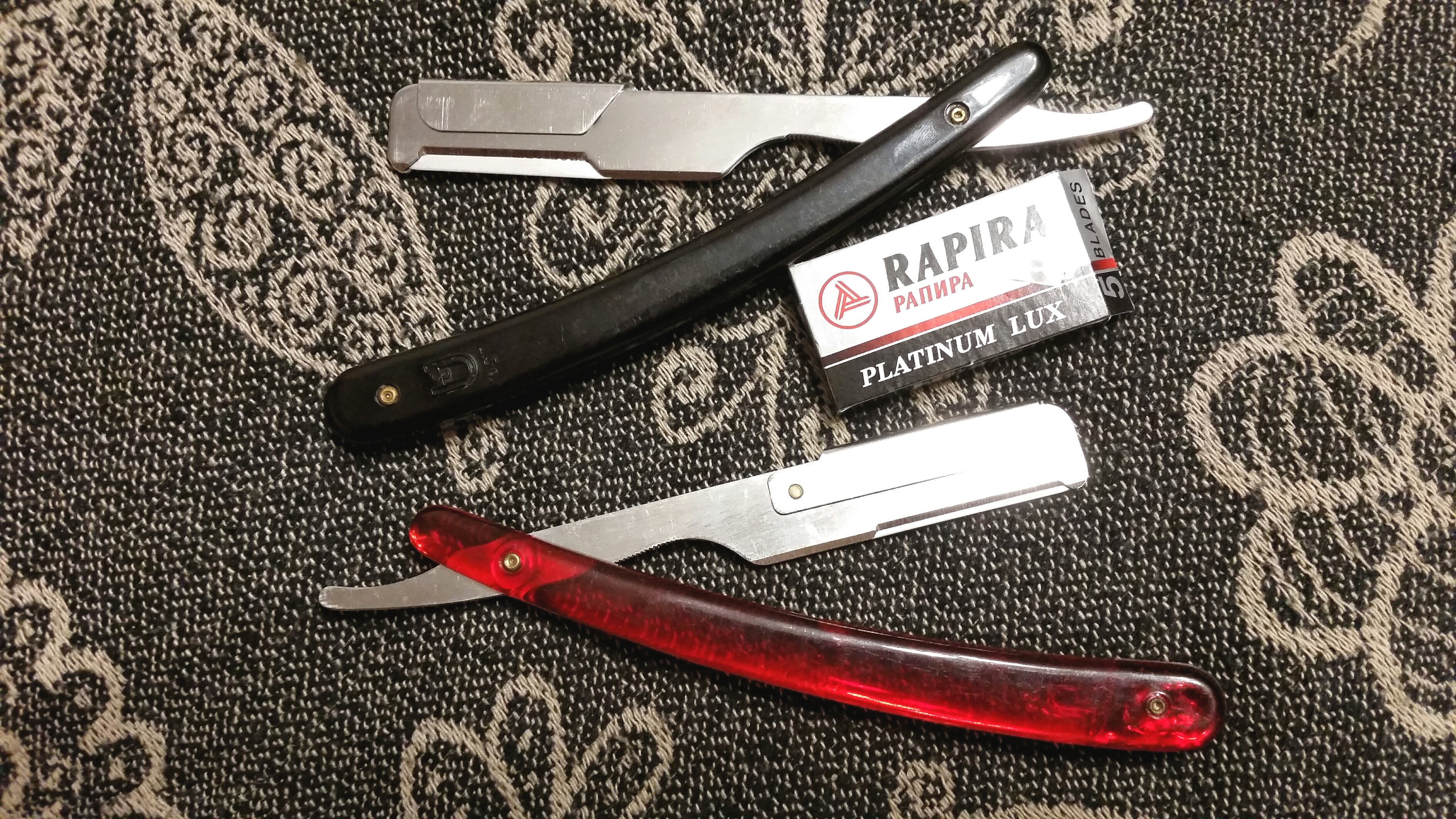Опасная бритва со сменным лезвиемШаветка Алатырь, завод Электроавтомат г. Алатырь, официально назывался "Аппарат опасной бритвы" (во как))), могла быть сделана в период с 79 по 89 годы, все родное, футляров увы не осталось. Цена 3 руб, подороже большинства опасных бритв. Прошелся пастами по держателю и продезинфицировал в Стериллиуме. У меня их две - красная и черная, разница только в цвете, пробовал красную. Настоящий инструмент советского парикмахера 80х, но и простой люд их вроде пользовал. Предназначены для зажимания половинки обычного DE лезвия, я разрезал ножницами, использовал самое простое и доступное - Рапиру Платинум. Давно хотел испробовать советские шаветки и вот - начал брить щеку по росту, о думаю, легко так летит и вроде жесткости нет, как хорошая бритва, ну и начал махать как всегда, резковато приложил к подбородку и бах - прокол точечный. Кровь так и сочилась до конца, теперь понятно, что инструмент более травматичен, чем клинок, ошибок не прощает. Я подуспокоился, начал прикладывать аккуратно, угол ставил почти плашмя, двигал неспеша и без какого либо давления вообще. Дело пошло нормально, технику использовал точно такую же, как при опасном бритье - натягивание кожи и бритье короткими стежками, косым резом и с потягом. В таком режиме идет хорошо, в щетине не вязнет, бреет довольно чисто и что интересно, почти беззвучно. В итоге выбрился чисто, кровь вроде остановилась, раздражения нет. Если сравнить с тэшками, с Роквеллом например, то шаветка поинтереснее будет, от станков часто ловлю раздражение именно при бритье против, тут такого нет, результат устраивает. Резюмируя - нормальный инструмент, можно изредка баловаться, но часто бриться им я не буду, опасные мне ближе и теплее. По эффективности он до лучших моих клинков не дотягивает, но зато перегоняет тэшки (хотя я их не так уж много и пробовал)