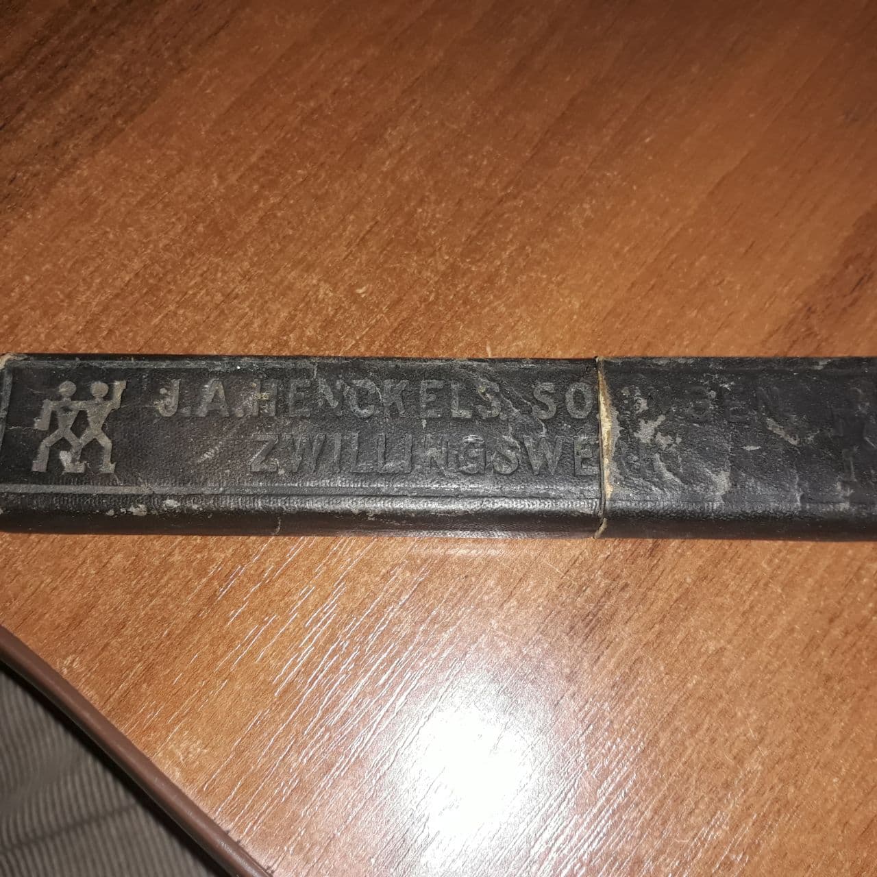 Он пообещал еще одну принести на завтра. У первой сломалась ручка при попытке уплотнения ручки (очень жаль) Вторую показываю тут. Досталась мне всего лишь за 4 бакса. по всей видимости это была когда то до регринда 5/8 бритва, вот такая. Заточилась быстро, так как сведение было по всей кромке и без повреждений, как на макро так и на микроуровне. "с рук" с легкостью брила предплечье, но начинать все же пришлось с тысячника. Были нюансы. Попробовал в бритье, вроде бы как оценка "отлично" посмотрим долговечность кромки, но судя по тому как она точится, регринд делали грамотно, не перегрели. Ничего не сыпется, без заусенцев, ну в общем вроде бы конфетка прожившая не одну жизнь. Не знаю теперь как уплотнить ей ручку, боюсь чтобы не треснула, подбиваю, она не уплотняется. Что делать непонятно. Но инструмент вполне рабочий, ощущения на уровне. а точнее их отсутствие Городишка у нас небольшой, около 100к всего, для нашего города фирменная бритва зарубежная это нечто, 4 года хожу на рынок, первый раз такое попалось.