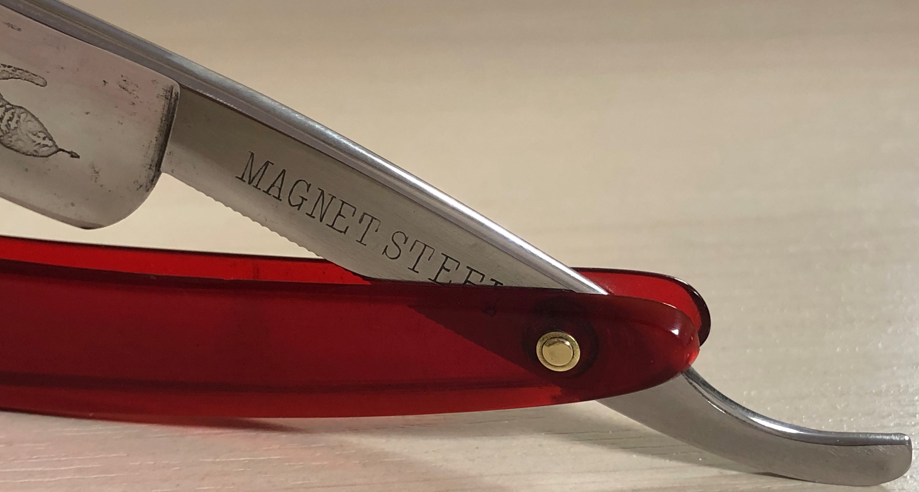 Бритва в состоянии близком к идеальному. Следов пользования не обнаружил.Разобрал, немного освежил металл на тонких абразивах, отполировал и снова собрал, сохранив родной пин.Кромочка равномерна по всей длине и практически незаметна.Сталь чистая,без видимых дефектов.Тяжёлая бритва,с элегантной формой клинка,с прекрасной"звонкой" сталью и мягким бритьём, будет очень неплохим вариантом для большинства заинтересованных товарищей.Заточена и готова к бритью.