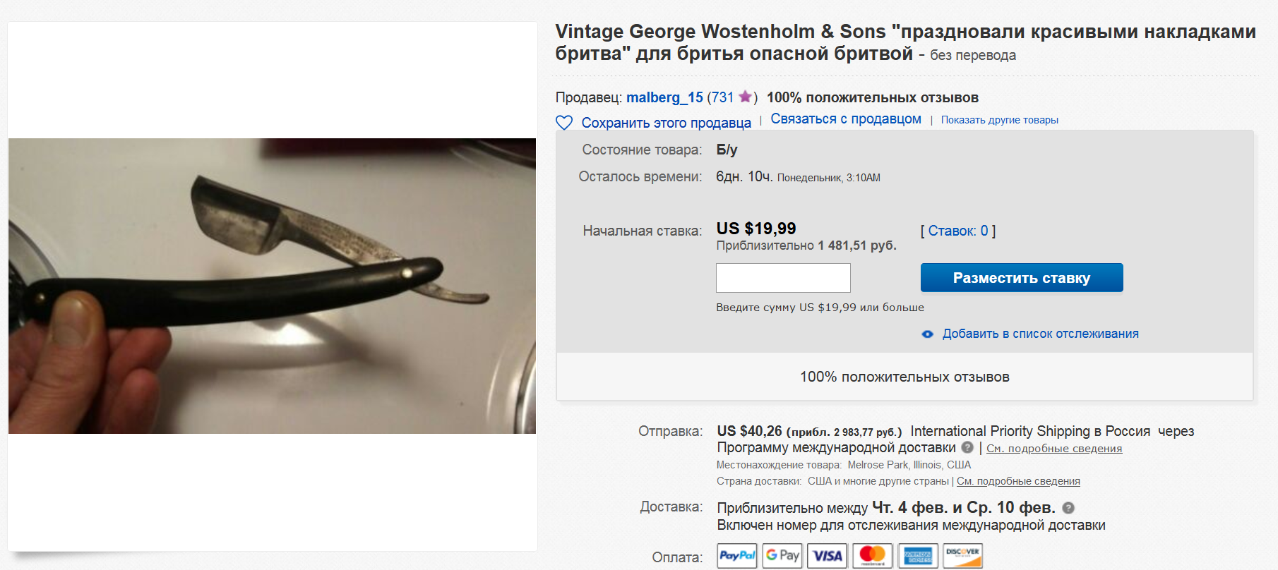 Аукционы: плагиат, развод и "великолепные" описанияАбсолютно нормально. Идеально! Ремонт опасных бритв, звонить с 11-00 до 23-00, +79267729357, (whats app, telegram, VK), спросить Олега.