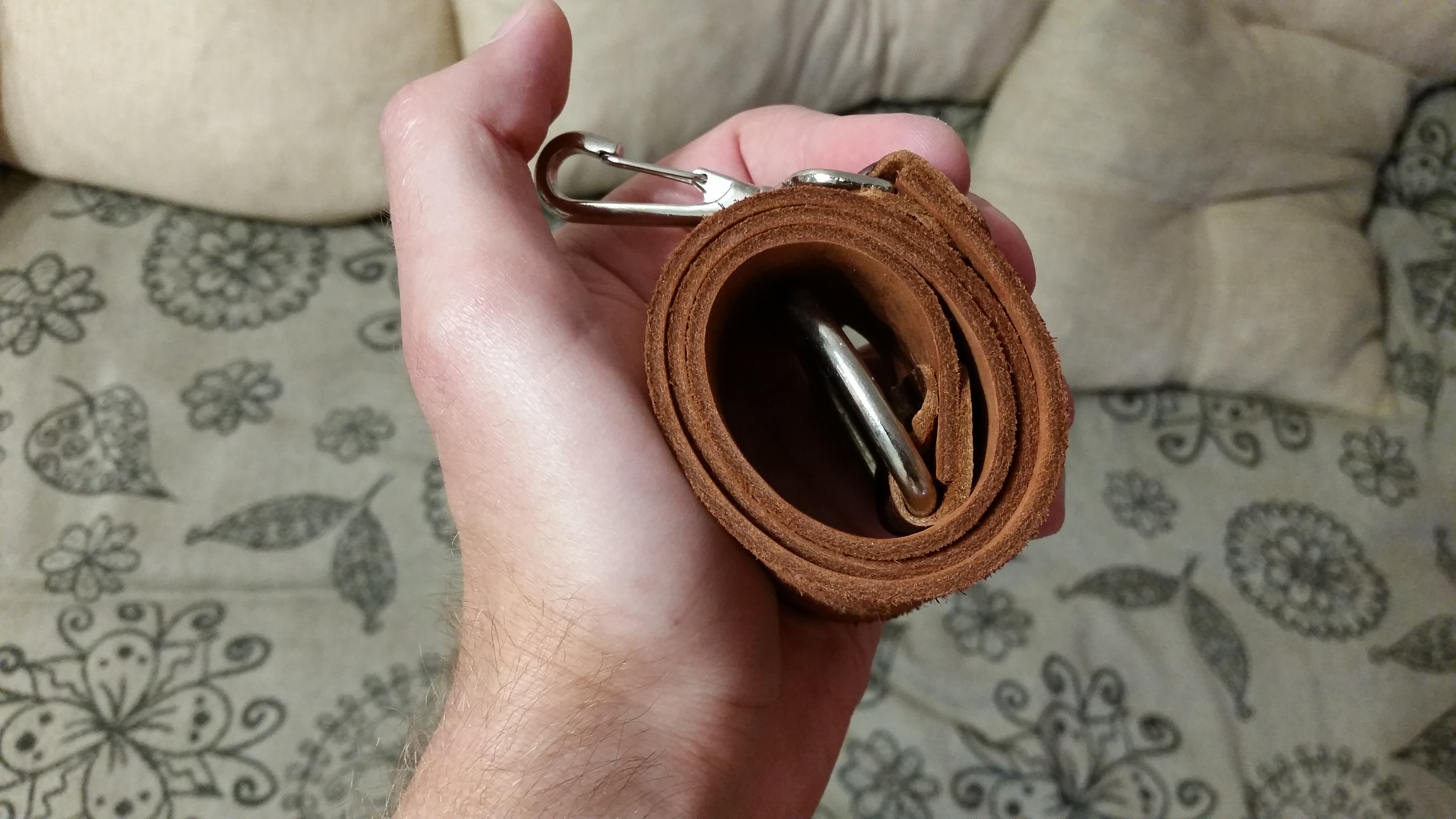 Турецкая крашеная кожа комбинированного дубления. Мягкий, многократно сворачивается в рулончик без последствий. Ремень подготовлен к правке, поверхность прокатана, отшлифована до Р2500 и немного смазана костным маслом. Достойно правит, добротная нержавеющая фурнитура, удерживающие элементы из натуральной кожи, все ремни новые, изготавливаю сам. Эти ремни более бюджетные за счет использования другой кожи (на стандартные ремни ставлю итальянскую кожу 3.7 мм).
