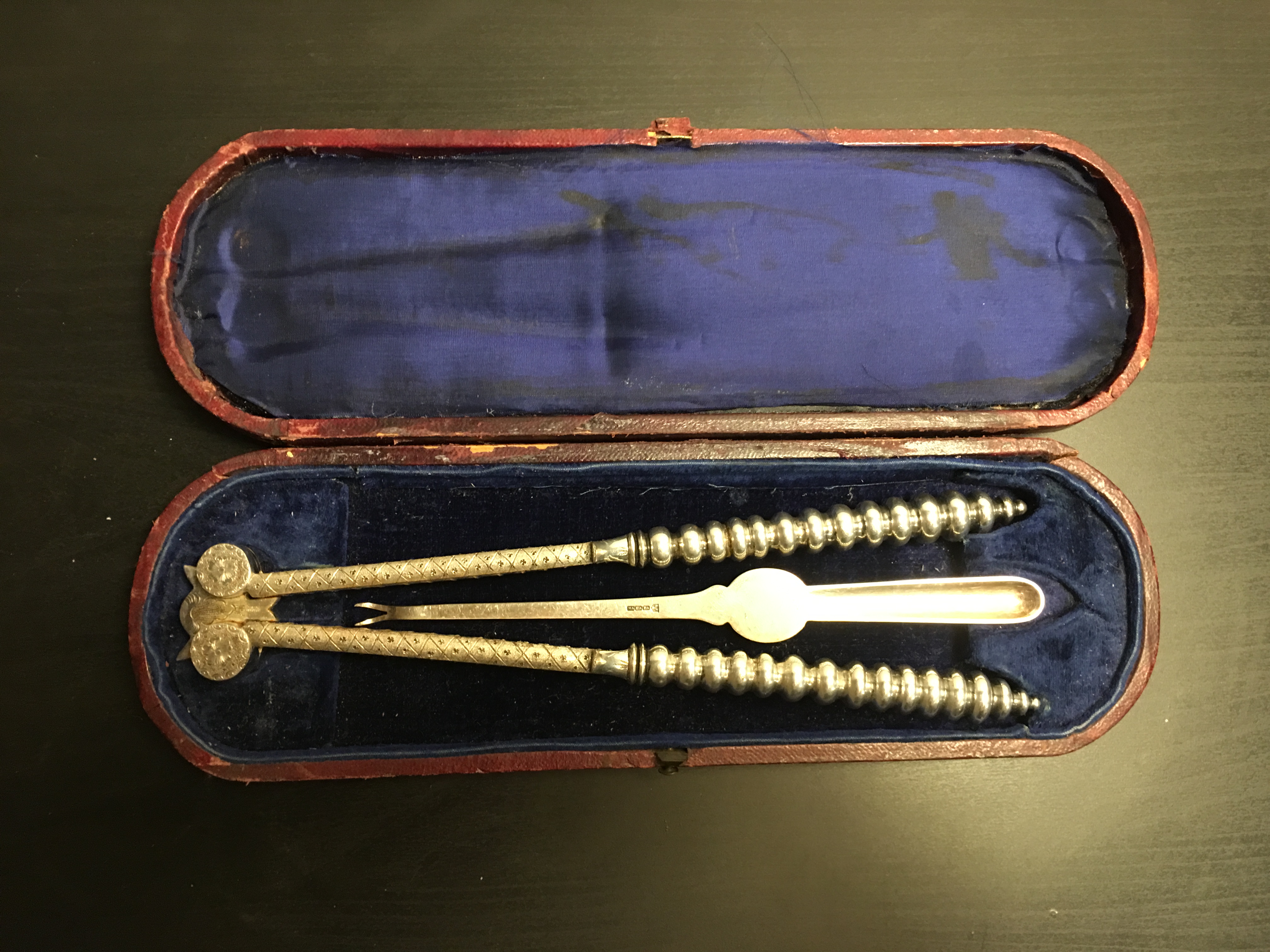 Во ещё щипцы и прибор для омаров. Продавец мамой клялся, что тоже Jernbolaget, просто старый совсем без штампа. Не знаю так или нет, но тож красивая штука. А вилочка - серебряная, судя по штемпелям - 1860-х