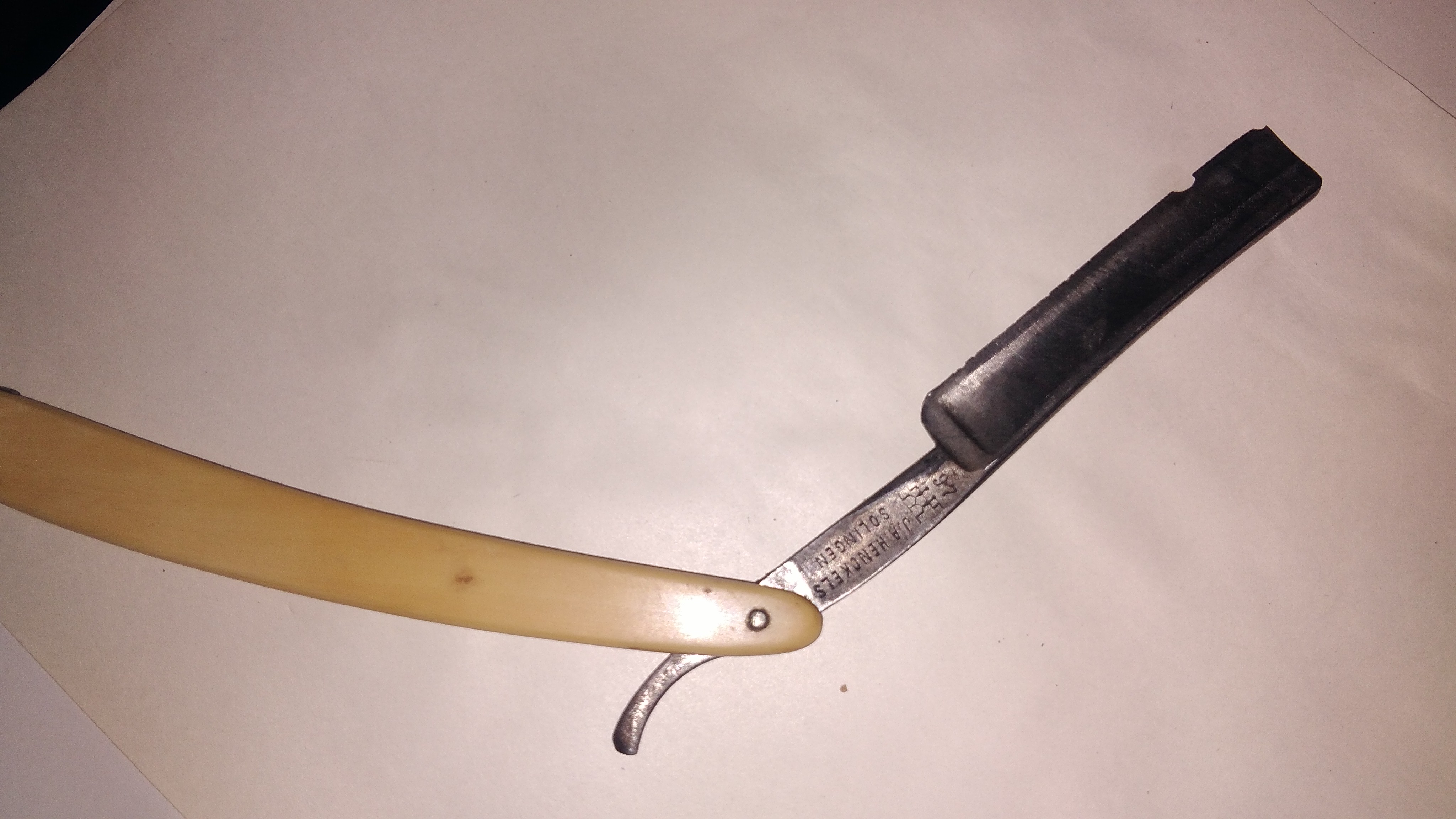 Бритва J.A.Heckled SolingenЭто мусор, как и выставленное предыдущее. Цена этого - по цене ручки, клинок в утиль. Можно все выставленное собрать в кучу и попробовать продать за недорого, но это надо еще поискать того, кто ничего в бритвах не понимает или имеет очень плохое зрение
