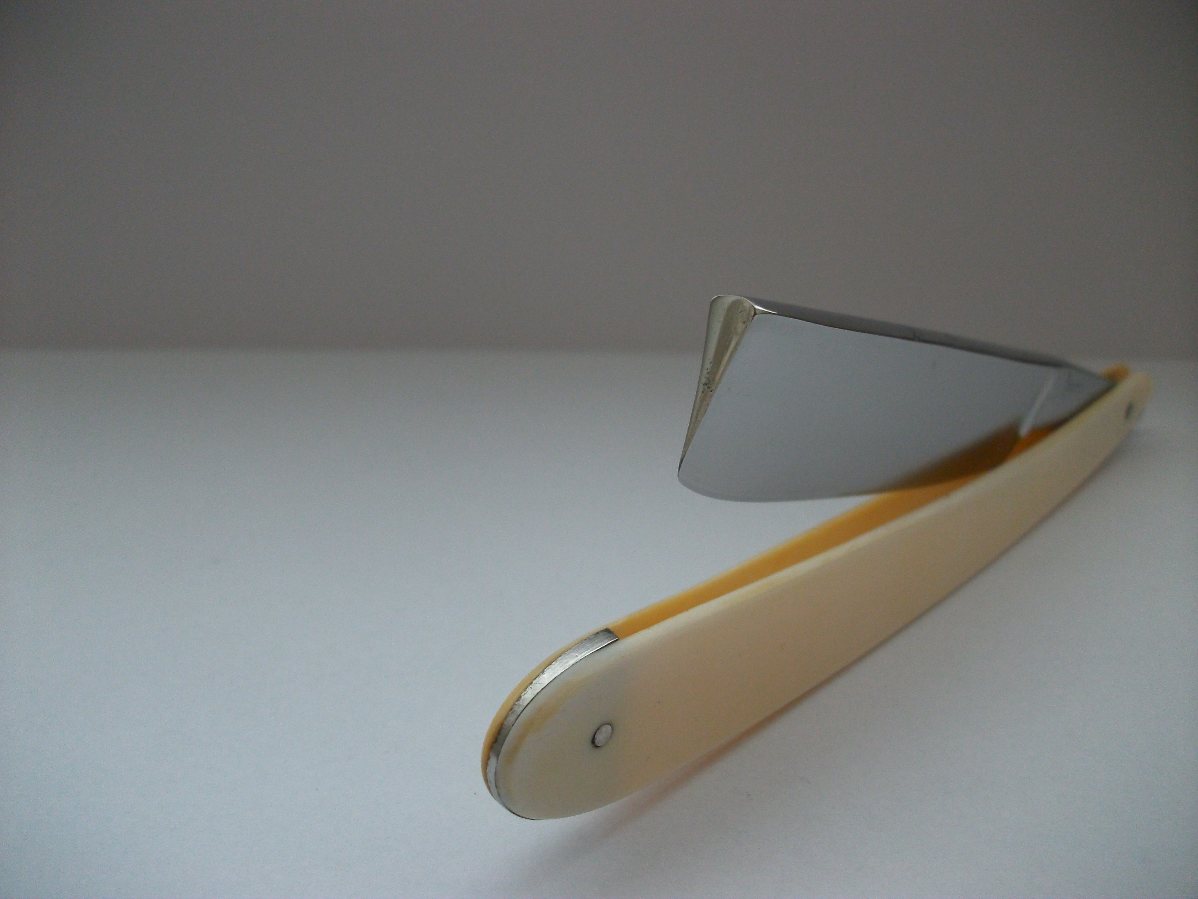 Достаточно популярный среди коллекционеров бренд. Углеродистая сталь, ширина полотна 19мм, длина режущей кромки 72мм, вогнутость полная, ручка - пластик. Заточена и готова к бритью. В комплекте оригинальная коробочка.