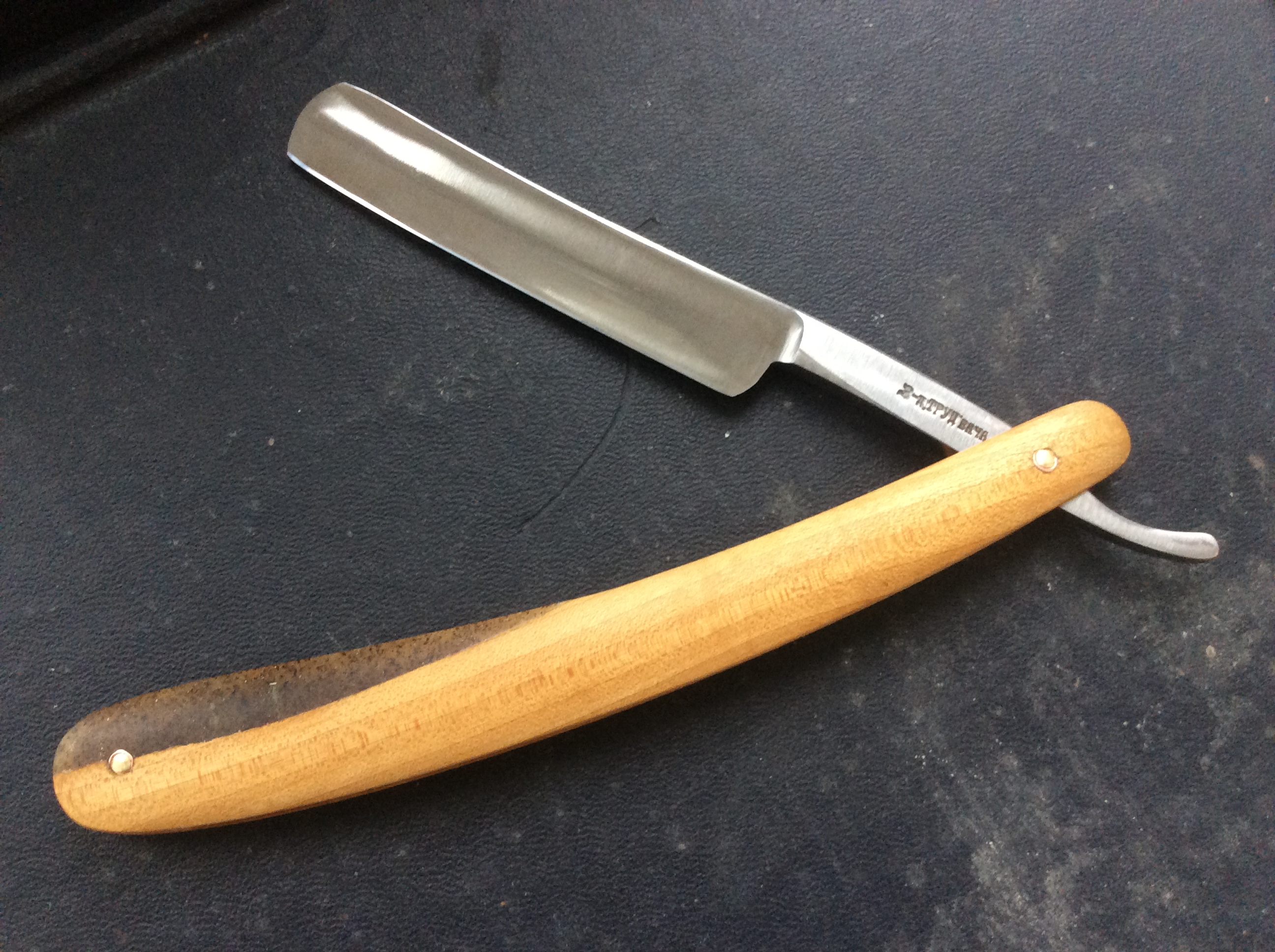 Бритва до... и после...Бронсон, плашки толстые. Просверлил два отверстия на сколе, вставил металлические штифты для надёжности. Залил эпоксидкой с древесными опилками и после обработал.