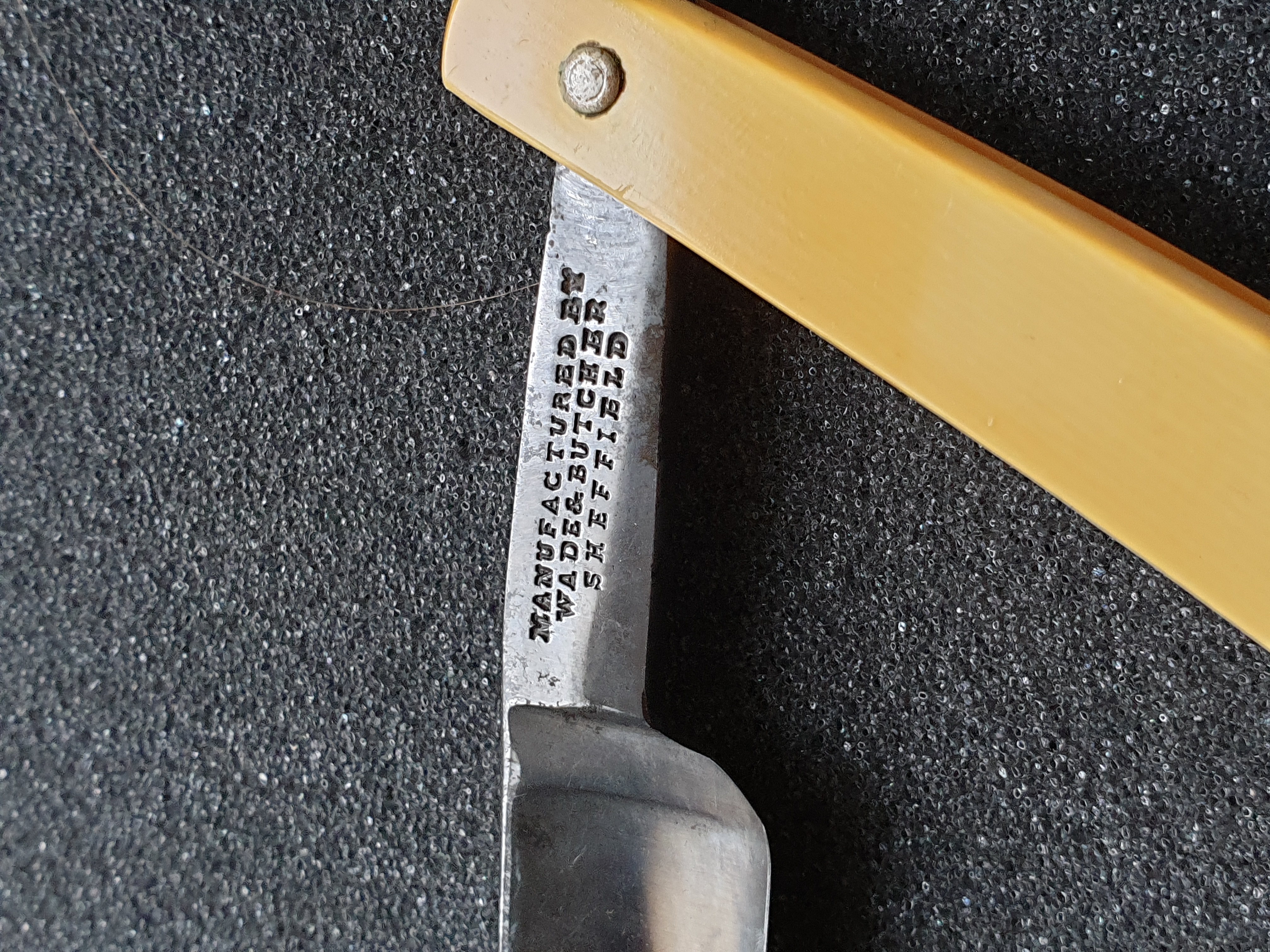 Продаётся от S&T78. Wade&Butcher под восстановление: ширина клинка 17,5мм, обух 5,4мм, ручка из целлулоида. Бритва не разбиралась, не шкурилась, только смыта грязь. Ржавчина на обухе, небольшая обратная улыбка, на кромке трещин нет. Ручка в очень хорошем состоянии, ровная.