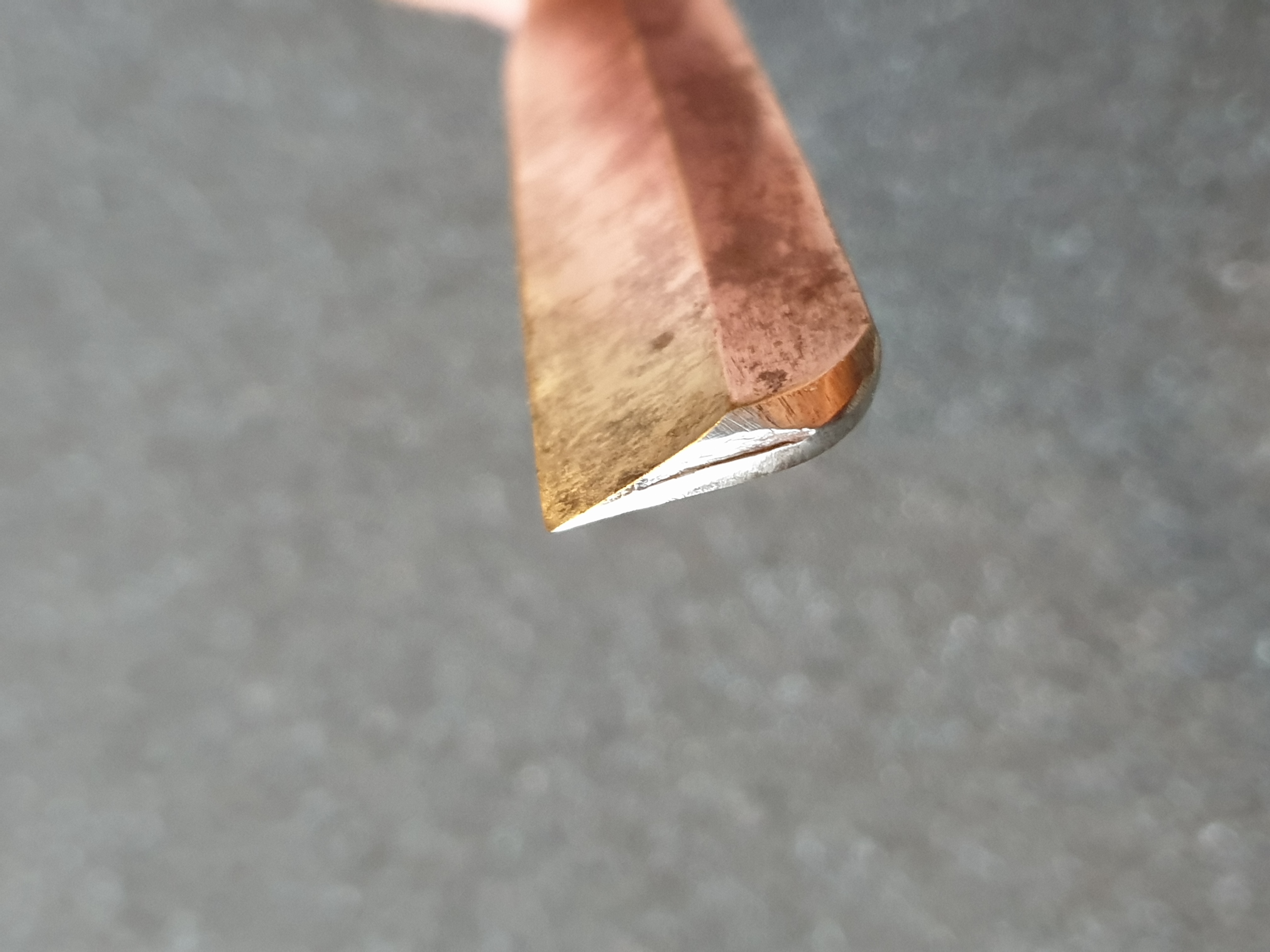 Ширина клинка 17мм, родная ручка из бакелита с логотипом. Родной гринд клинка и пины. Сделана заточка без изоленты, чтобы очистить боковины обуха от небольшой ржавчины на них. Комфортный рез. Цена ПРОДАНО Spoiler Show