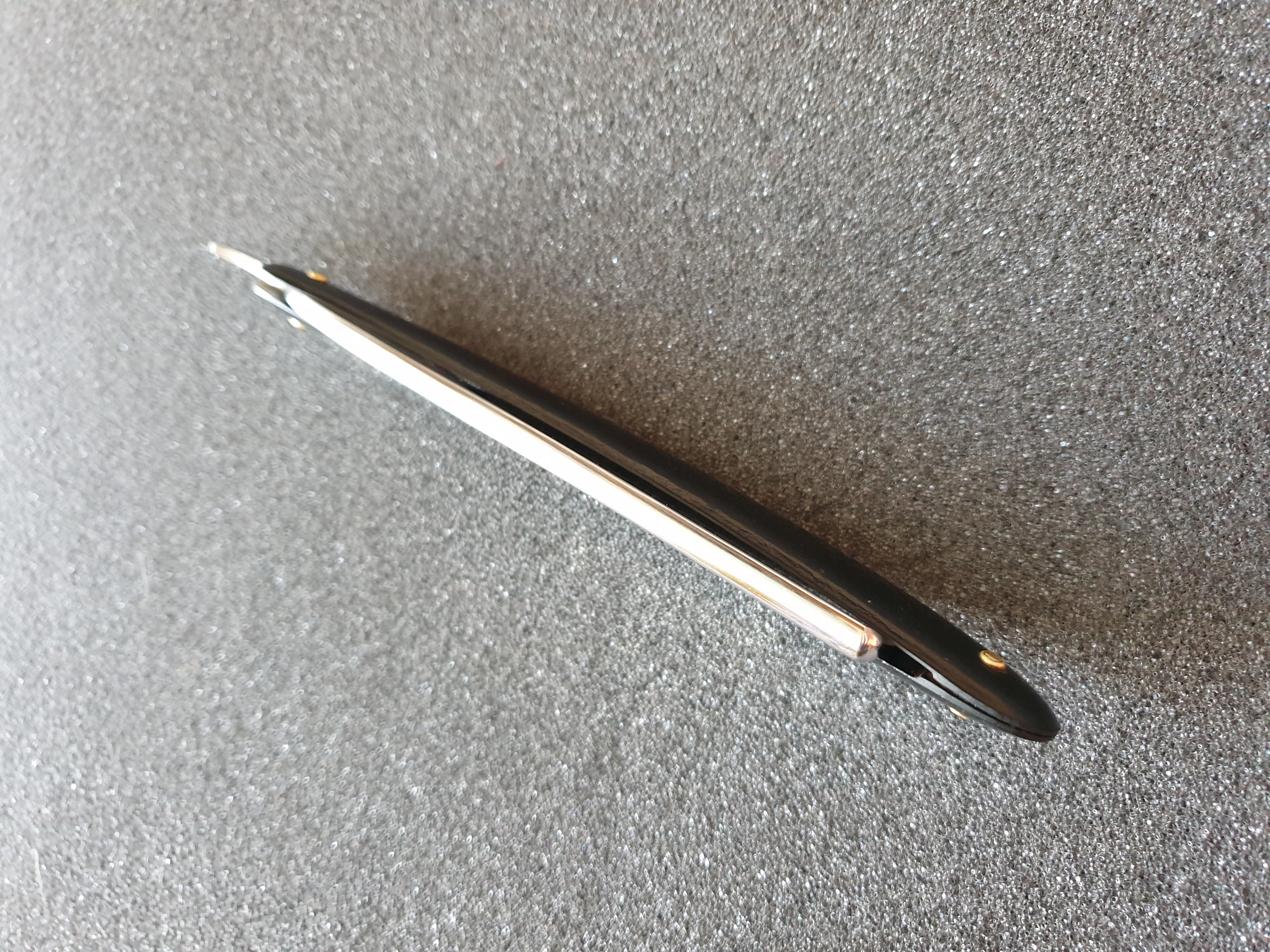 Ширина клинка 17мм, родная ручка из бакелита с логотипом. Родной гринд клинка и пины. Сделана заточка без изоленты, чтобы очистить боковины обуха от небольшой ржавчины на них. Комфортный рез. Цена ПРОДАНО Spoiler Show