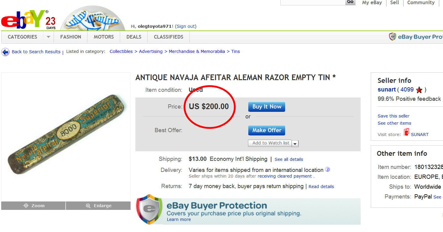 http://cgi.ebay.com/ANTIQUE-NAVAJA-AFEI ... 229wt_1082" onclick="window.open(this.href);return false; Жылизяка жестяная за 200 баков... Пустая... "Купить прям щяс" жми... З.Ы. Там ещё бонус, для особо умных, экономная отправка за 13 зелёных Вашингтонов.. Добавлено спустя 2 часа 14 минут 32 секунды: NAVAJA DE BARBA - это что? http://articulo.mercadolibre.com.ar/MLA ... aleman-_JM" onclick="window.open(this.href);return false; Ремонт опасных бритв, звонить с 11-00 до 23-00, +79267729357, (whats app, telegram, VK), спросить Олега.