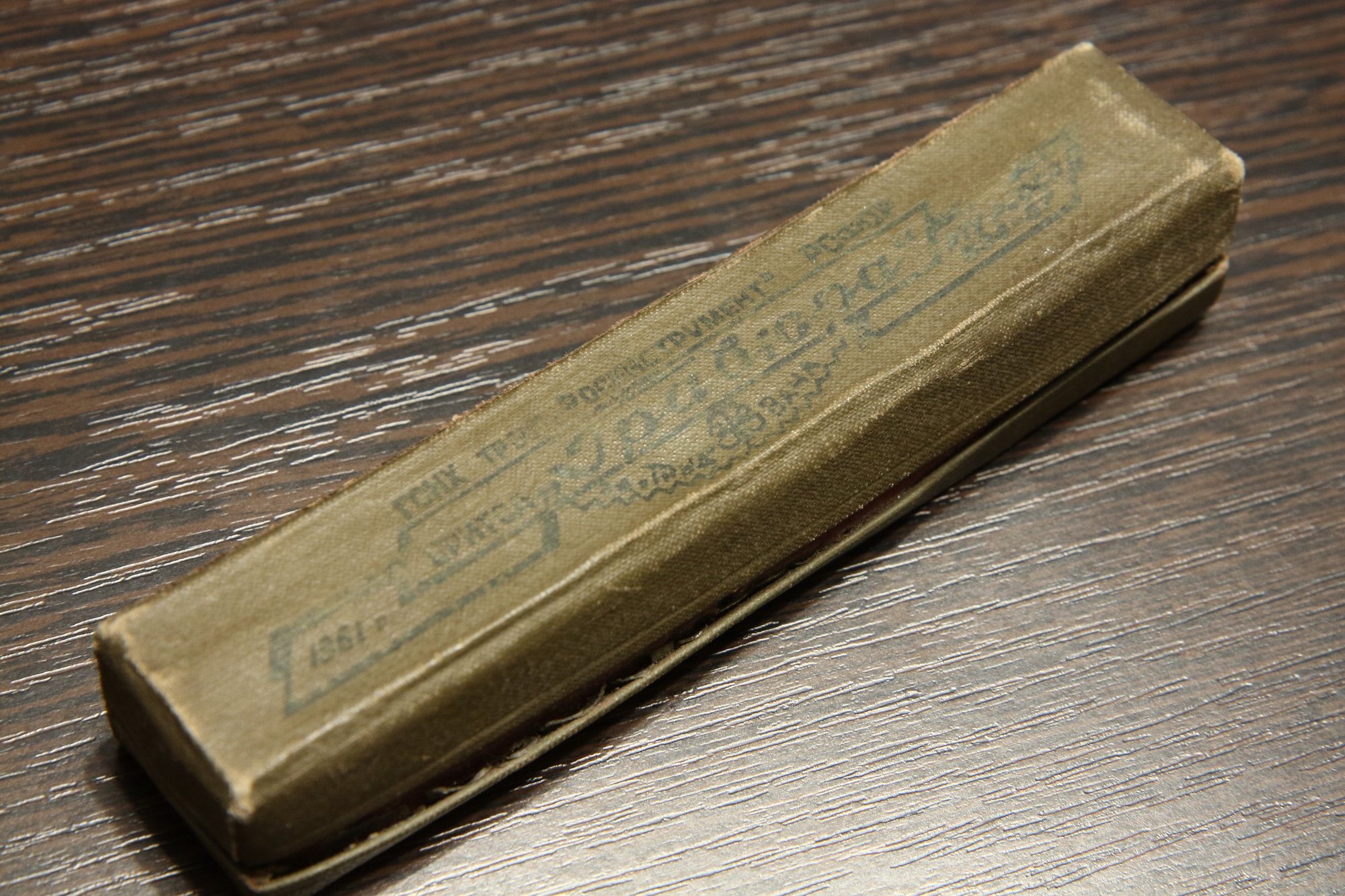 Опасная бритва Гравюра, завод ЗТВ (Вача), 1965 год. Ширина полотна 17.7 мм, все родное, футляр тоже. Гравюра на полотне "Горький". Пришла с заводской заточкой, но с кривоватым полотном. Почистил вручную с сохранением гравюры и заточил, полностью вывел заточку, подготовлена мной к бритью. Затачиваться и правиться будет без проблем. Приятный экземпляр с передового завода Труд Вача, бреет отлично. В советские годы бритвы Гравюра и Подарок относились к премиум-классу продукции ЗТВ. Цена - руб.