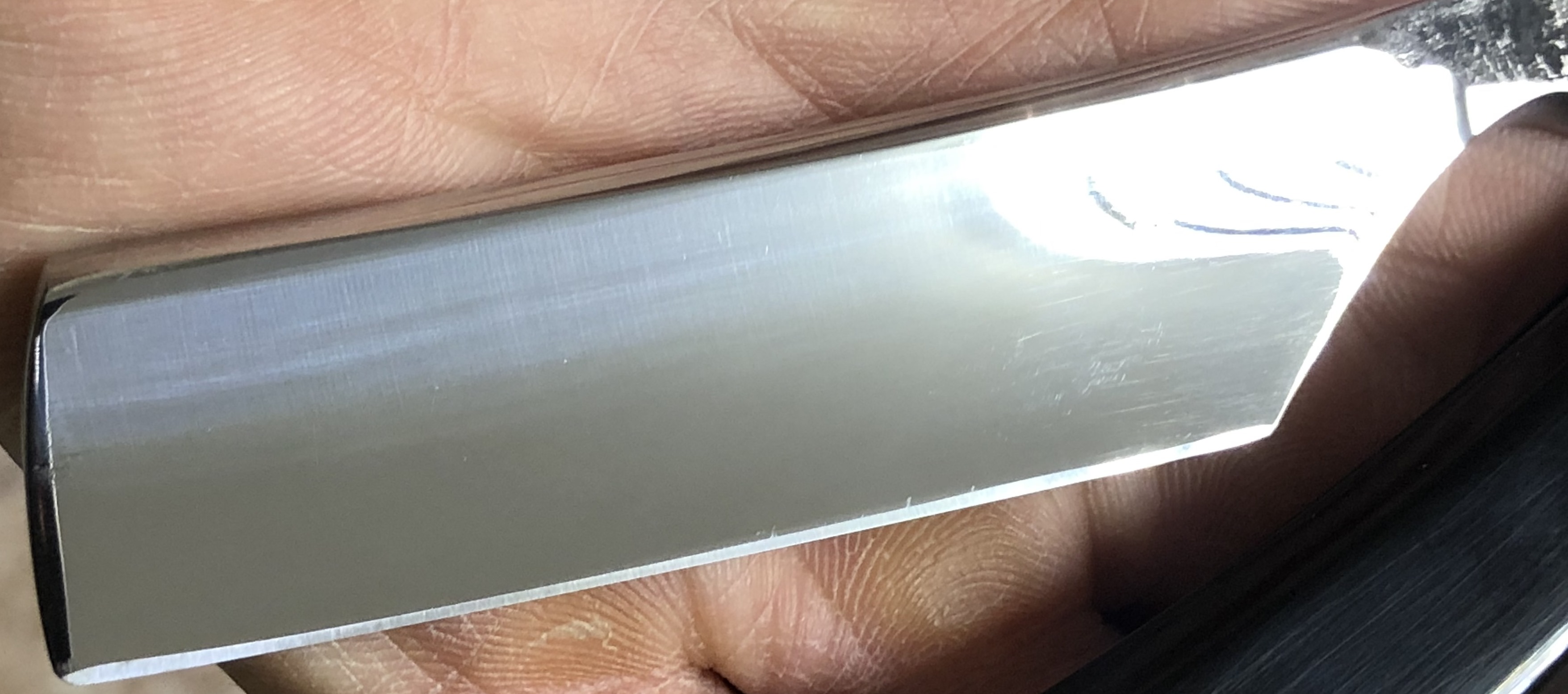 Вот и сегодня посчастливилось поработать с кованым , мощным клином, ручной работы.Как по мне, так форма необычная.По крайней мере клинок с таким вырезом пятки мне встречается впервые. Поэтому, пока завтра бритва не поехала к новому счастливчику, решил запечатлеть ее тут, в копилку,так скажем. Все таки, понимали японцы толк в этом деле и имели вкус в создании бритв такого рода. Ничего лишнего и пошлого не заметил.Красивая, крупная, серьёзная вещь.. Рекомендовал бы всем в будущем попробовать нечно подобное... Всё будет ХОРОШО...тел:+79065827134