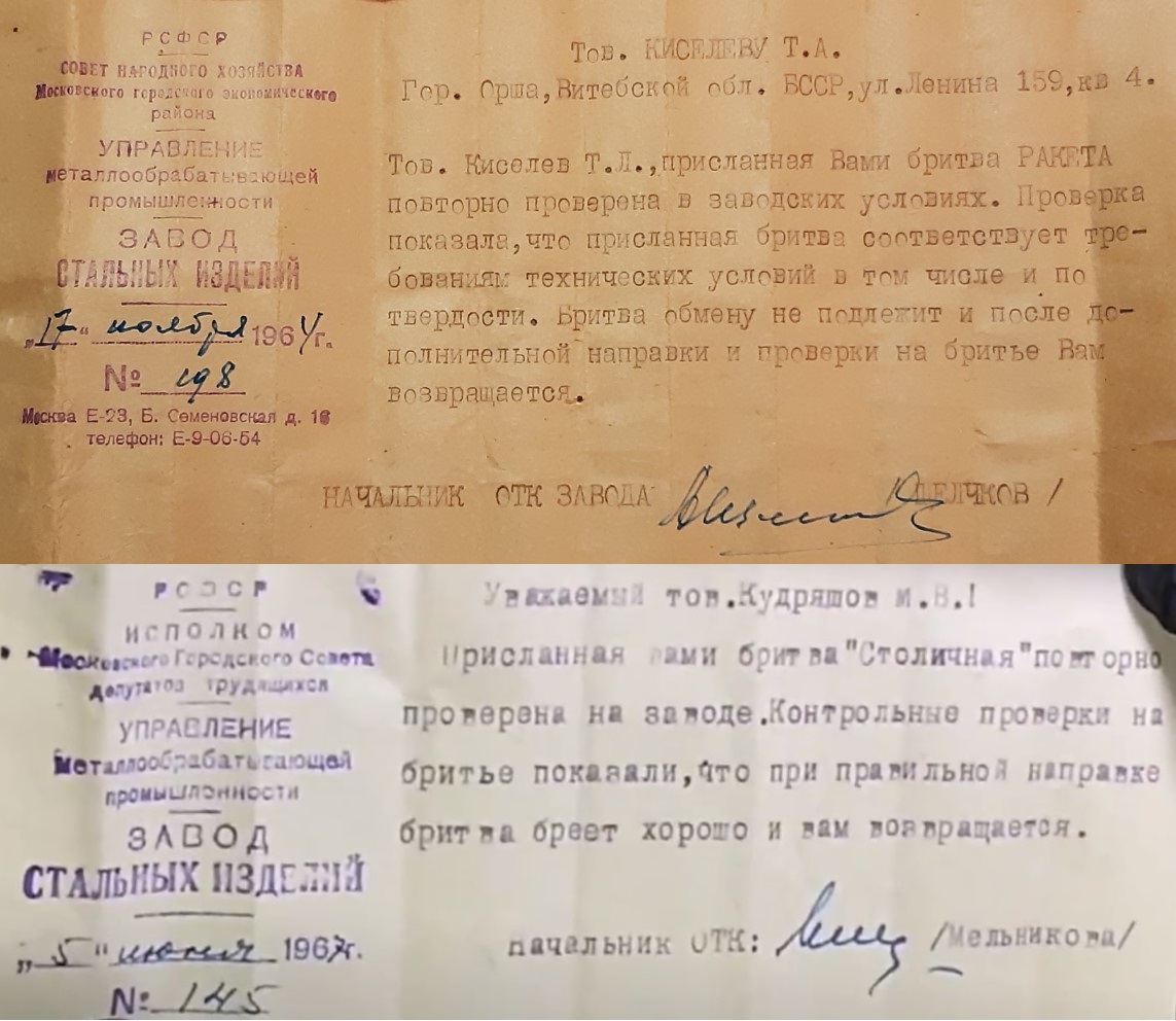 "Контрольные проверки на бритье...." - ими брились на заводе, проверяли! )))
