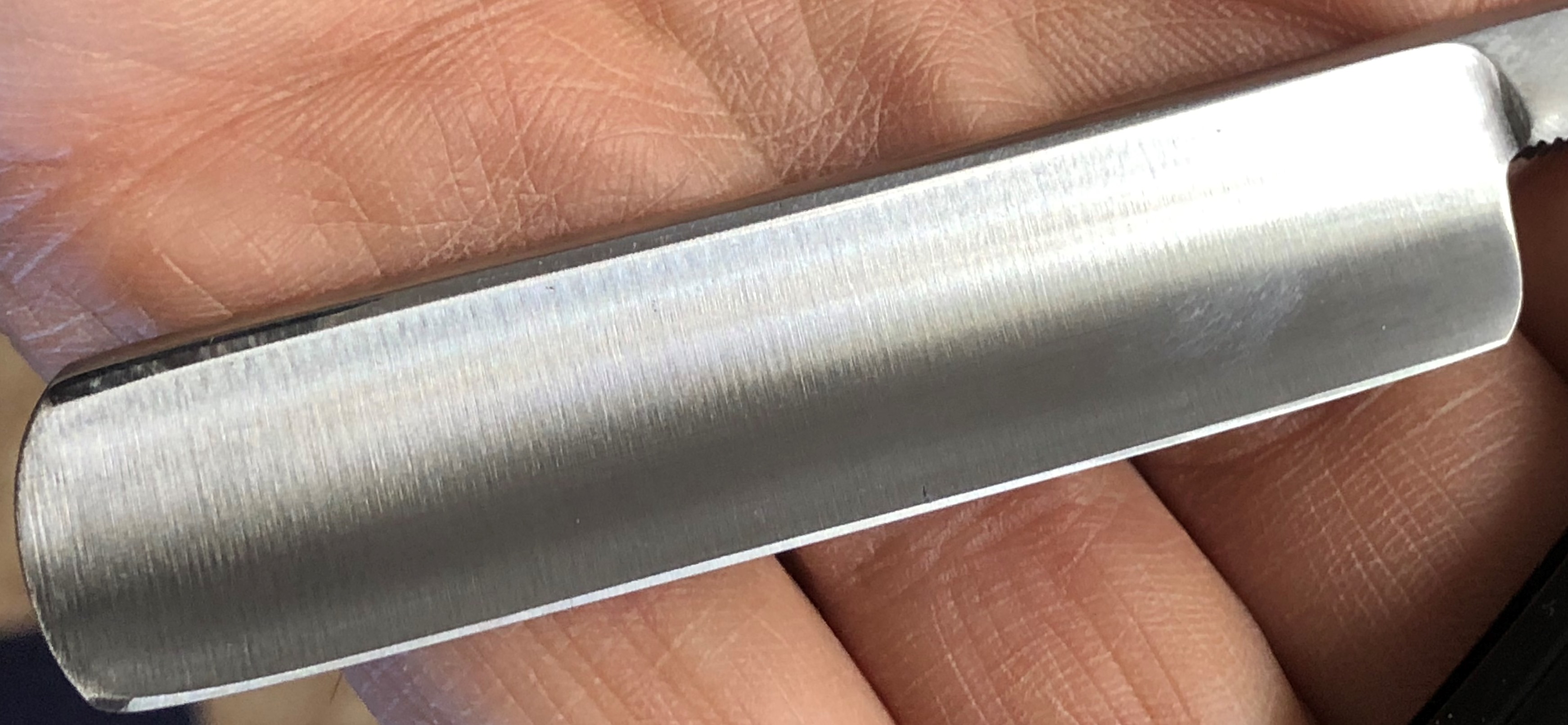 Бритва находится в прекрасном состоянии,практически без следов пользования.Возможно точилась не более одного-двух раз.Клинок без царапин, ржавчины и окисление, имеет оригинальную шлифовку и полировку. Не разбиралась и не ремонтировалась.Идеальная геометрия полотна:кромочка равномерна по всей длине.В общем и целом состояние новой бритвы, без видимых дефектов.За счет своей формы лезвия и толстого обушка,бритва способна брить очень комфортно, кладя ее практически плашмя и не приподнимая обушок при бритье.Качественная, красивая, с прекрасной сталью бритву, на все случаи жизни.