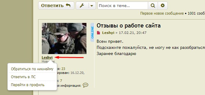 Отзывы о работе сайтаНет просто когда пишешь в какой нибудь теме сделать ссылку на человеке в тексте, или тут такого нету?