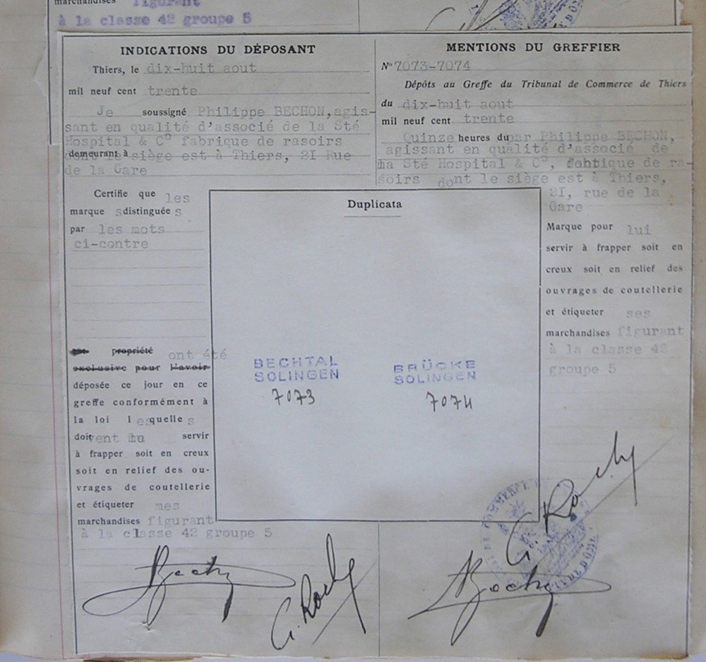 Фото регистрации торговой марки в 1912 году. Впервые есть также знак "Le Roi Solei" или Короля Солнца.
