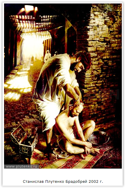 Плутенко Станислав Владимирович. Родился в Москве в 1961 г. Окончил МИНХ им. Плеханова. Брал уроки живописи у частных мастеров, пишущих в жанре реализма, в том числе Великобритании. Работает в уникальной технике смешения темперы, акрила, акварели и тончайшей лессировки AirBrash. Станислав Плутенко включен в 1000 лучших художников — сюрреалистов всех времен и народов. Большинство работ находятся в частных коллекциях России, США, Англии, Германии, Швеции, Монако, США, стран Ближнего Востока. „Брадобрей” 2002 г. „Брадобреи” 2005 г.
