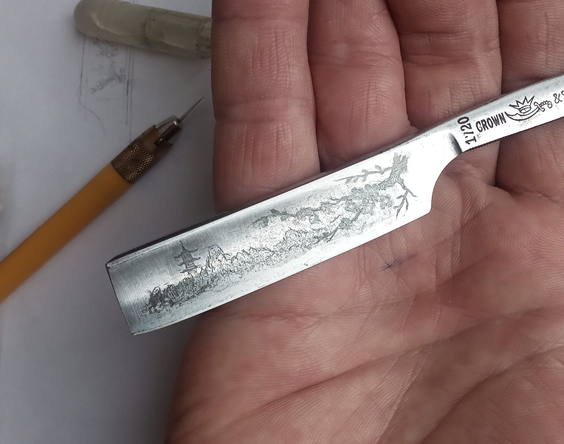 Травление клинка, восстановление рисунка.Ремонт опасных бритв, звонить с 11-00 до 23-00, +79267729357, (whats app, telegram, VK), спросить Олега.